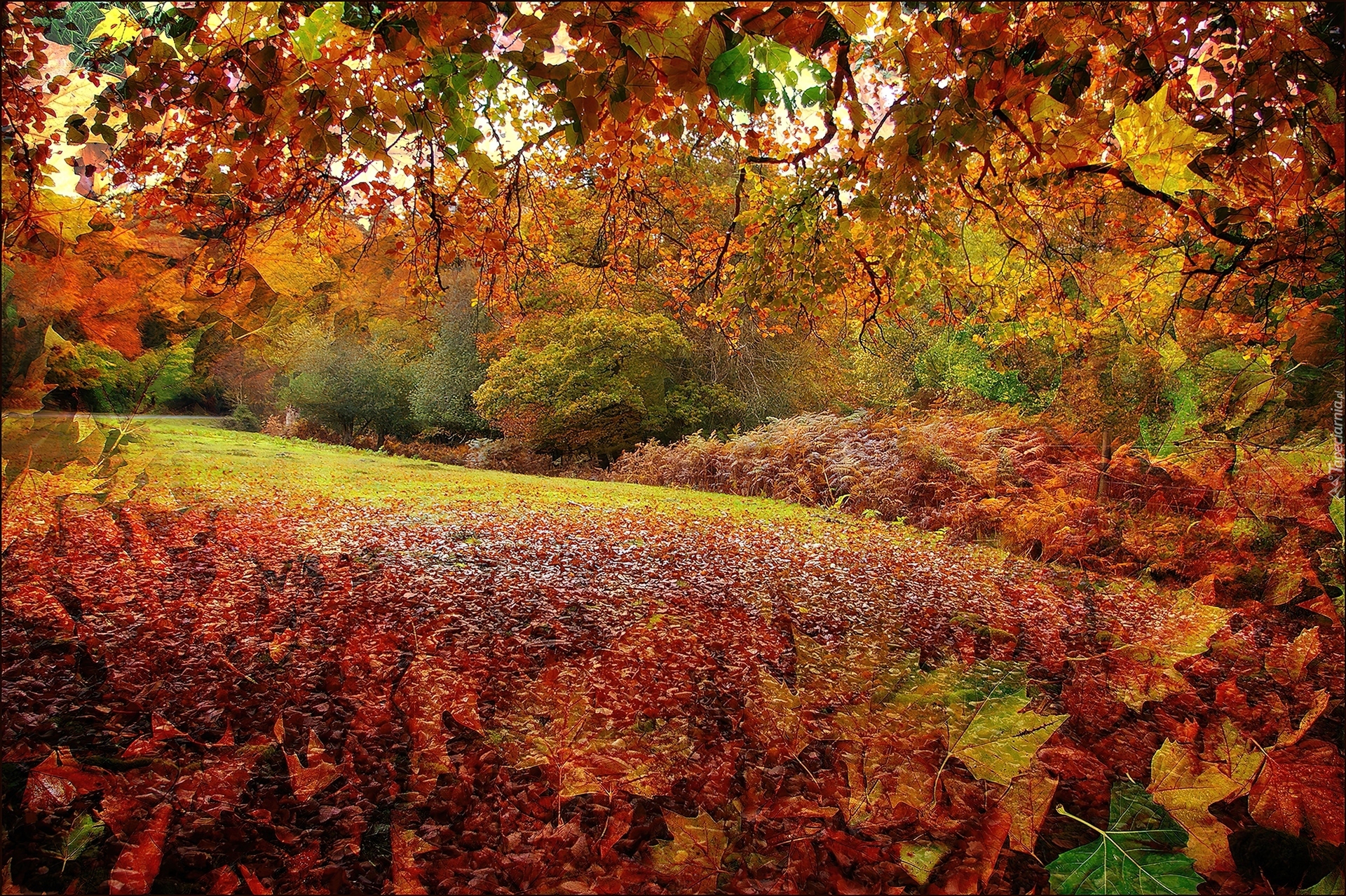 Edytor tapety: Grafika, Jesień, Park, Liście