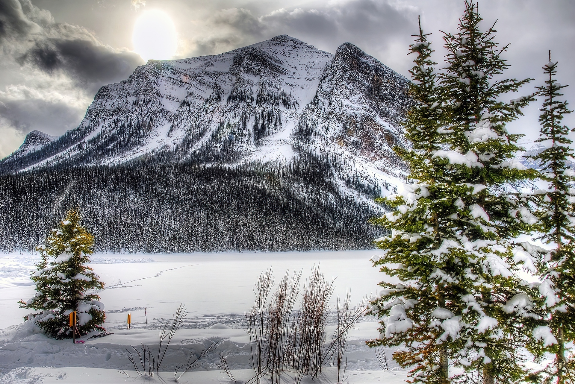 Edytor tapety: Zima, Śnieg, Góry, Świerki