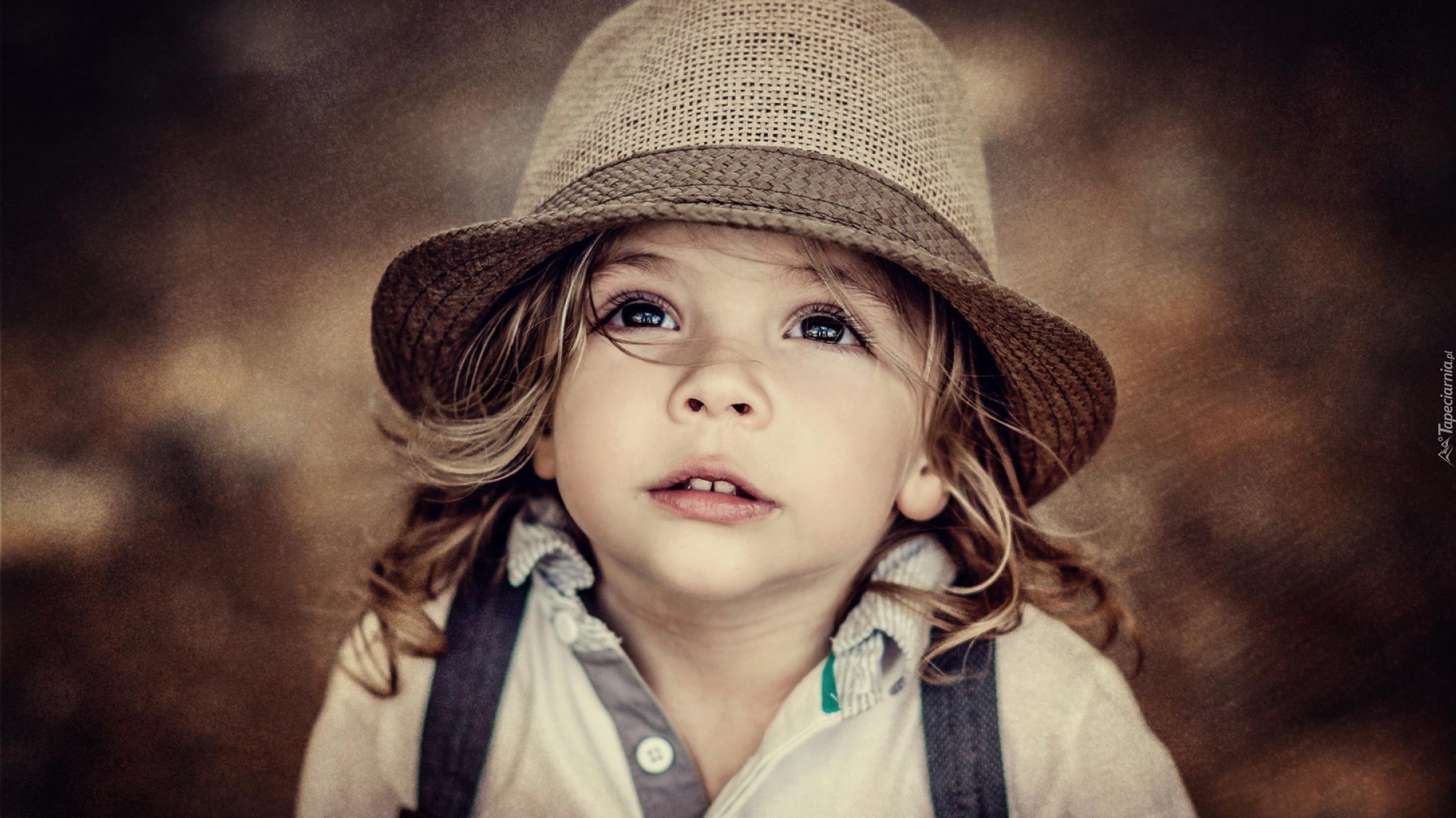 Edytor tapety: Dziecko, Chłopiec, Twarz, Spojrzenie, Kapelusz