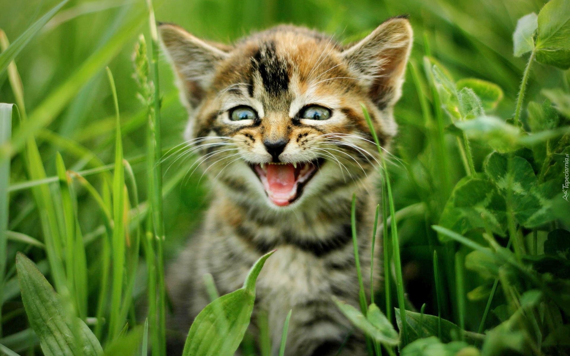 Edytor tapety: Szczęśliwy, Kotek, Zieleń