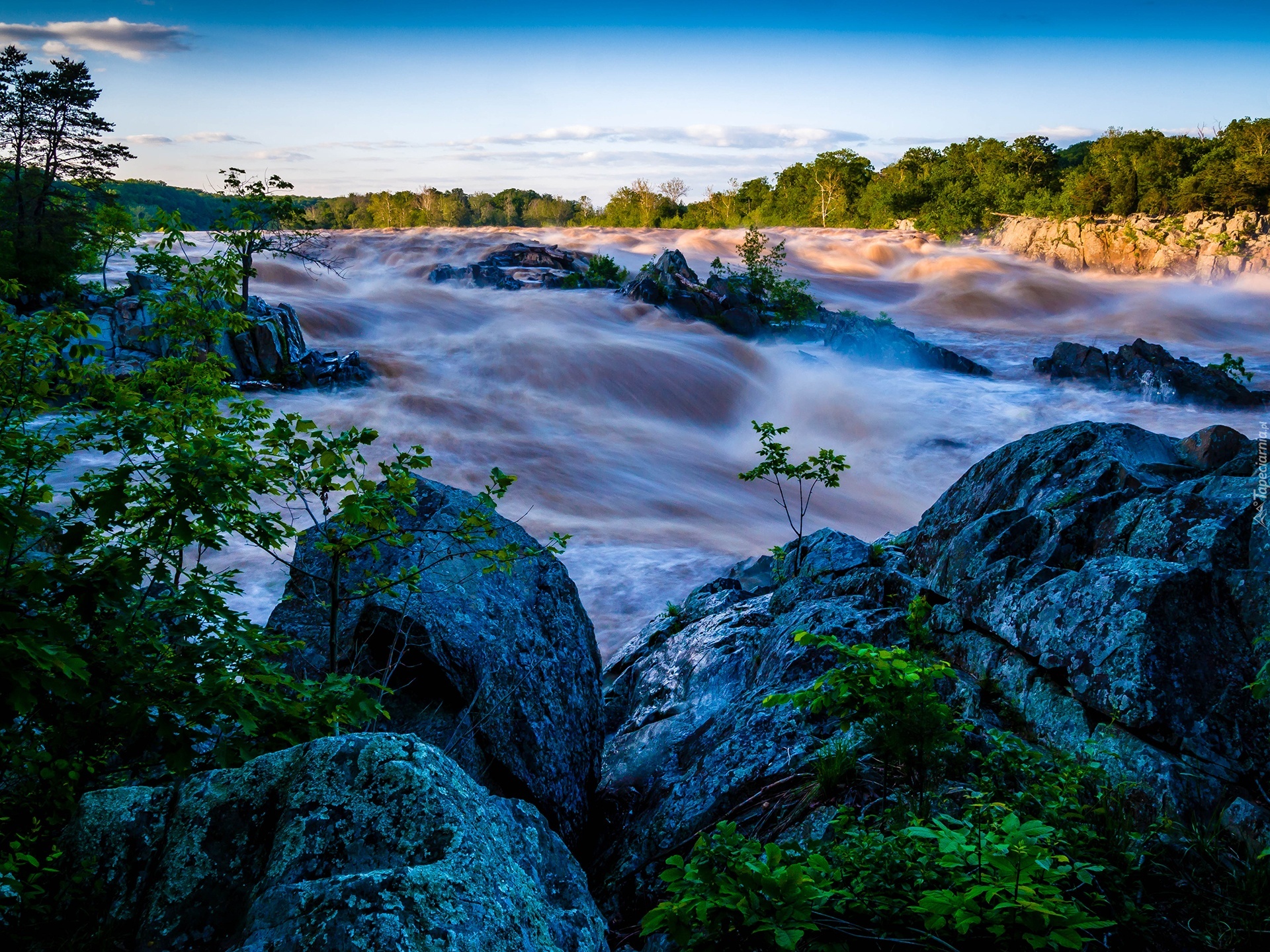 Edytor tapety: Rwąca, Rzeka, Kamienie, Drzewa
