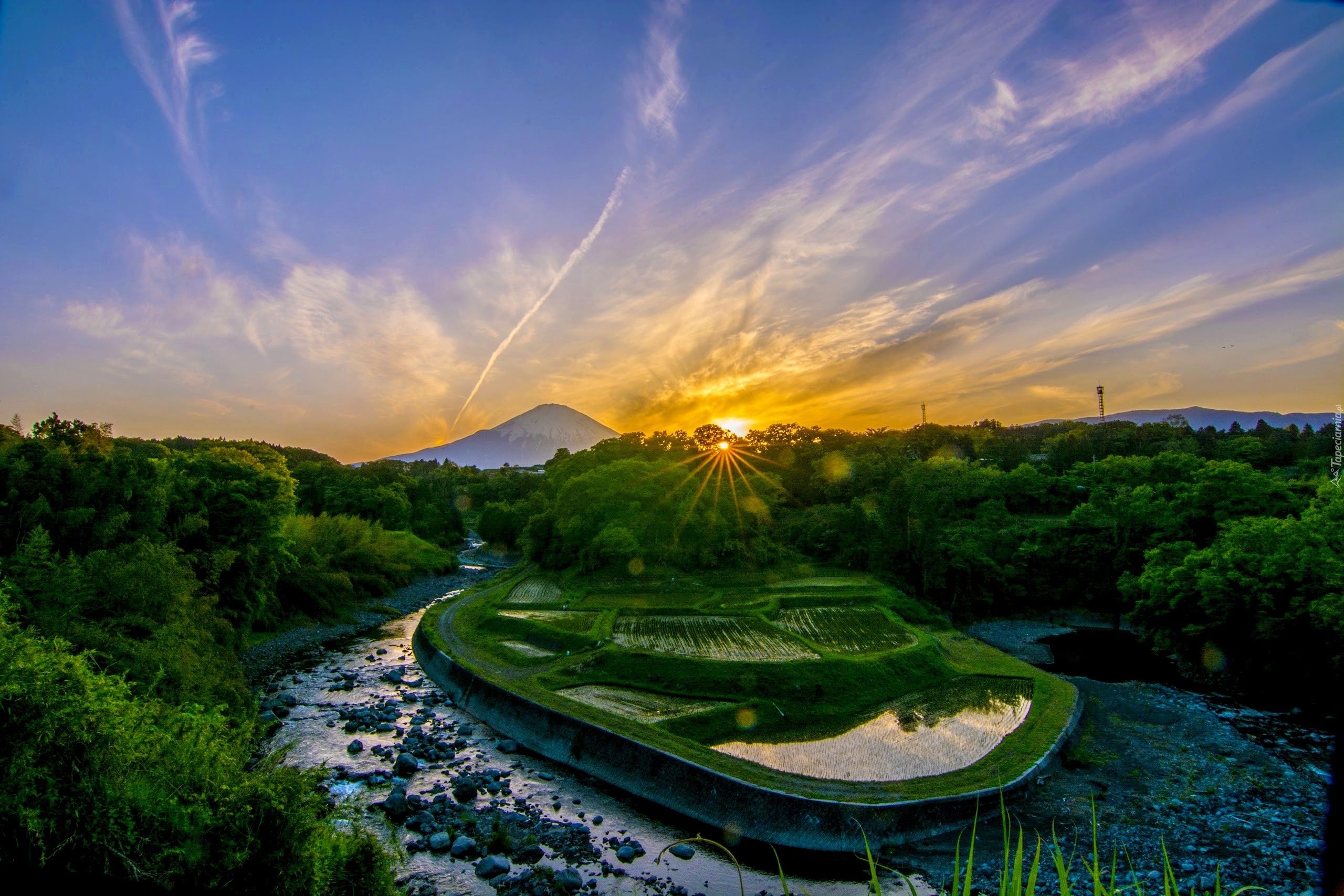 Edytor tapety: Zachód, Słońca, Góra, Drzewa
