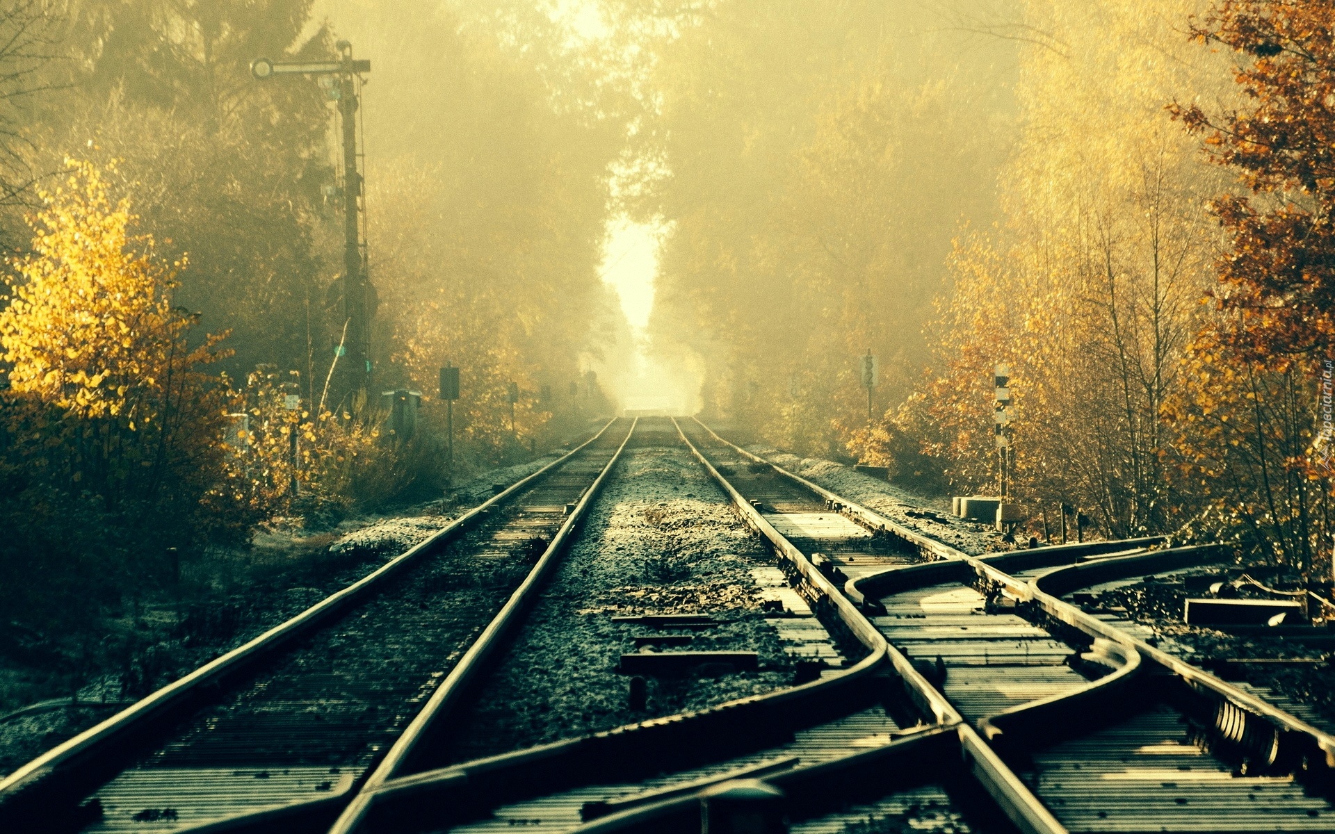 Edytor tapety: Las, Mgła, Tory, Kolejowe