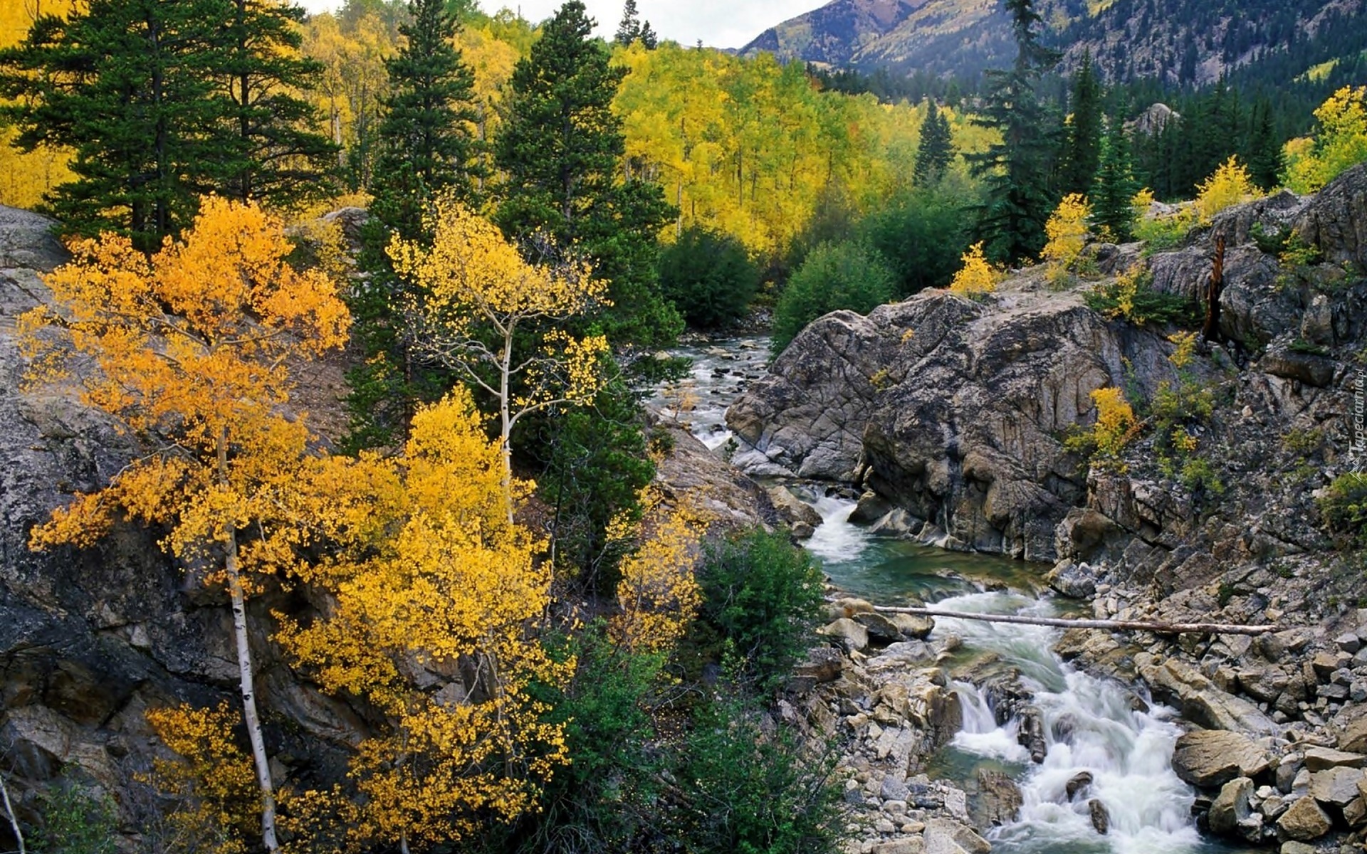 Edytor tapety: Jesień, Góry, Lasy, Kamienie, Rzeka