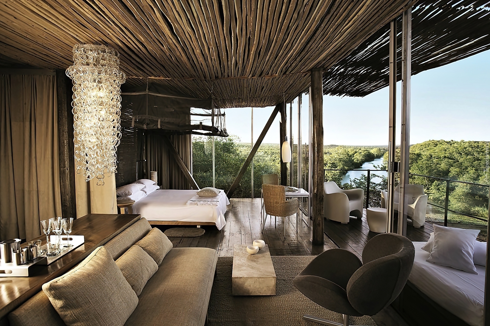 Edytor tapety: Dom, Wnętrze, Sypialnia, Taras, Widok
