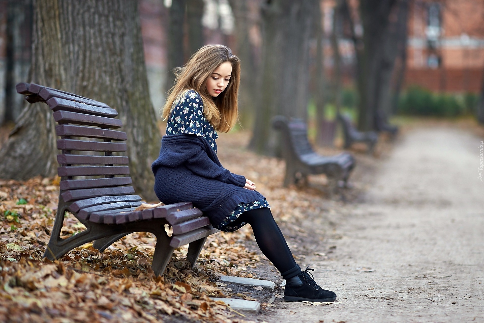 Edytor tapety: Jesień, Park, Aleja, Dziewczyna, Na Ławce