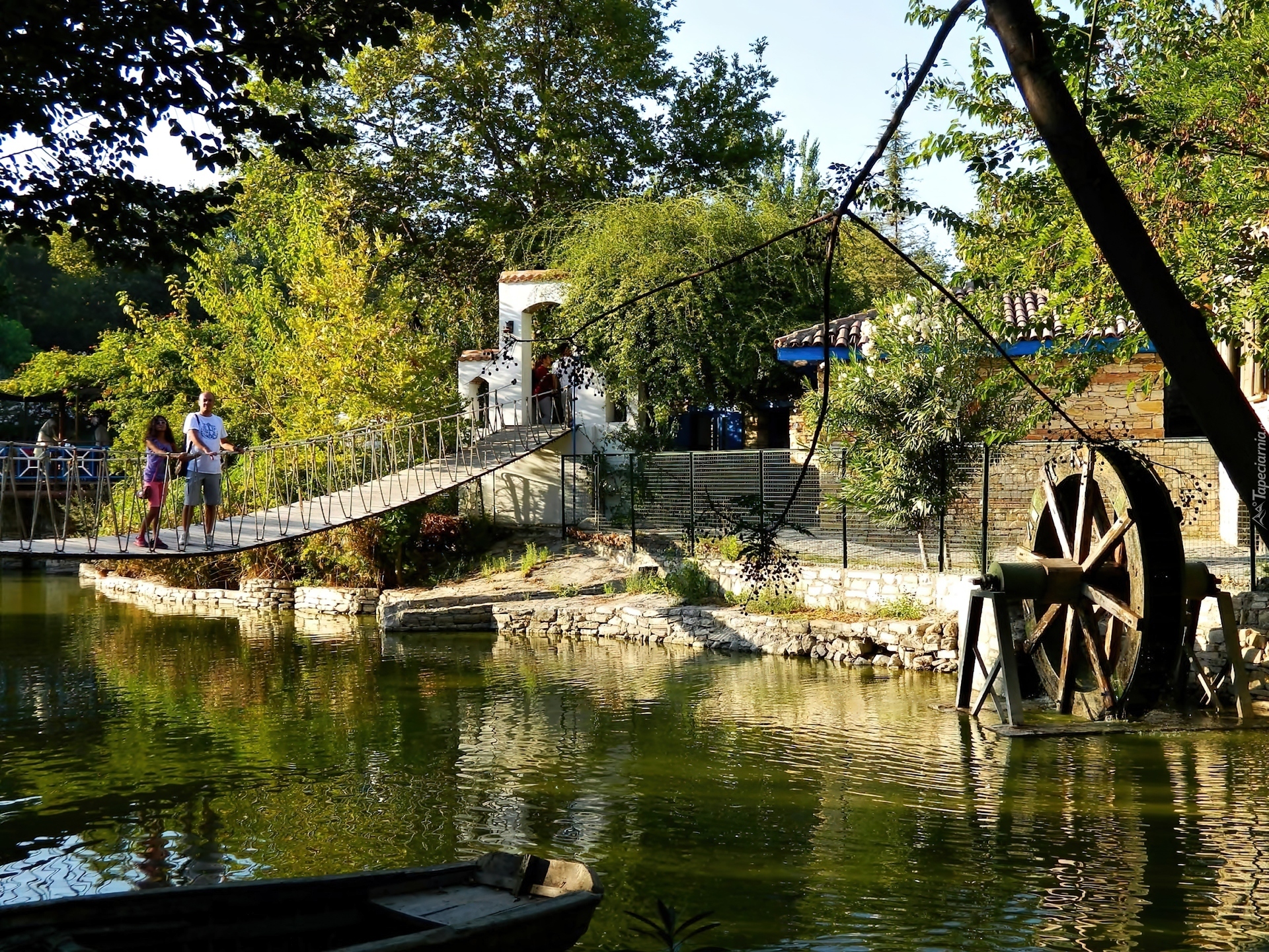 Edytor tapety: Rzeka, Młyn, Wodny, Mostek, Dom, Drzewa, Przebijające, Światło