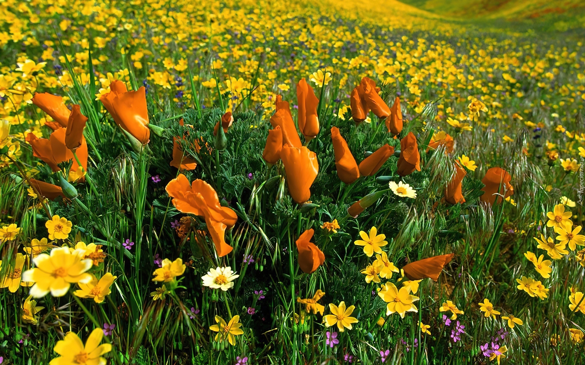 Edytor tapety: Łąka, Kwiaty, Trawa