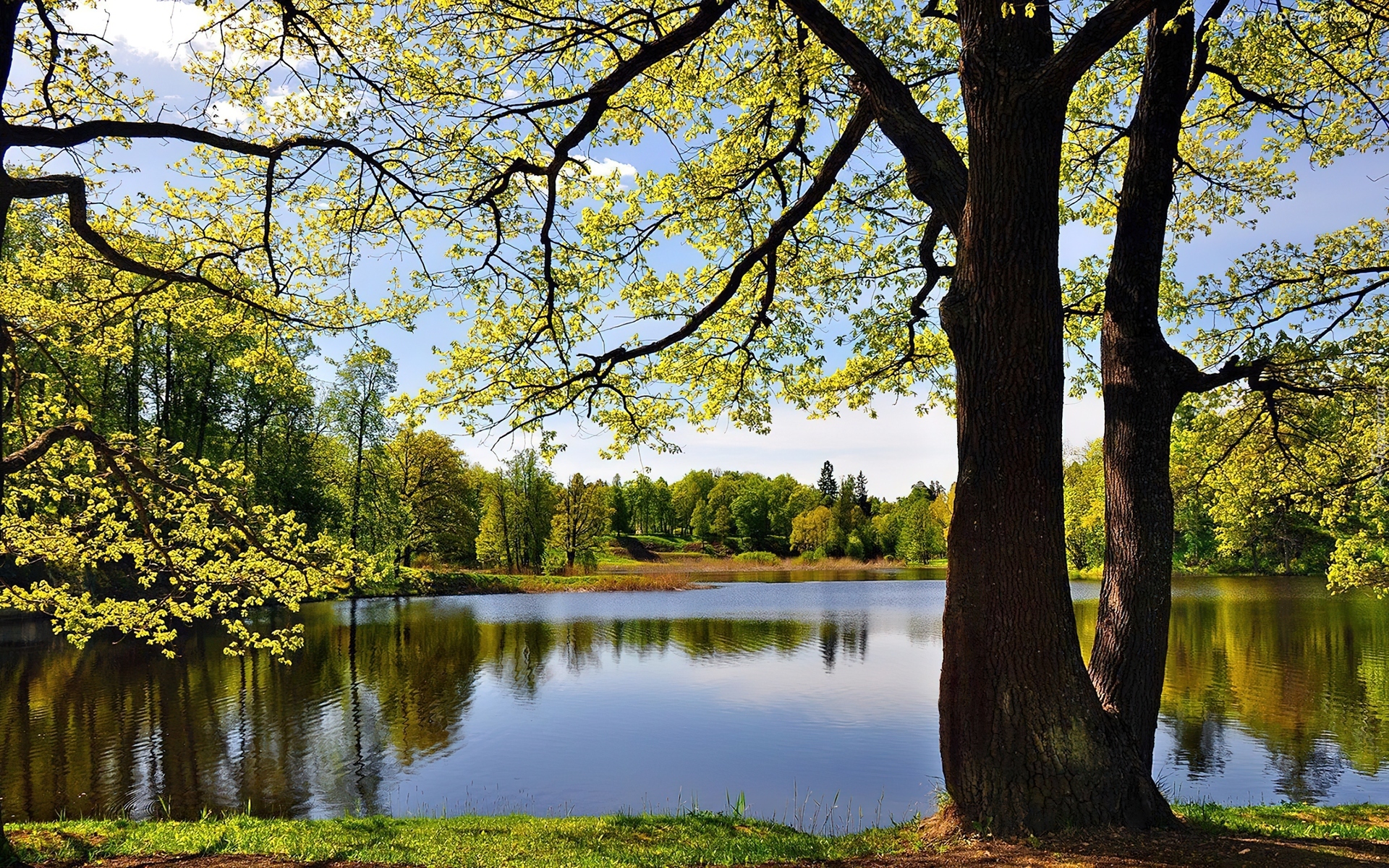 Edytor tapety: Jezioro, Niebo, Drzewo, Las