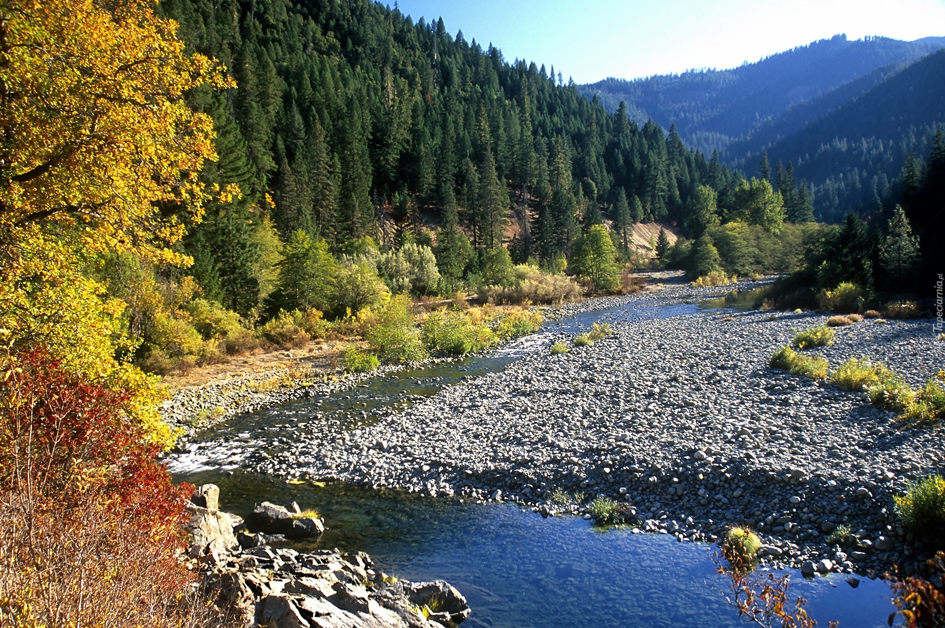 Edytor tapety: Góry, Las, Rzeka, Kamienie