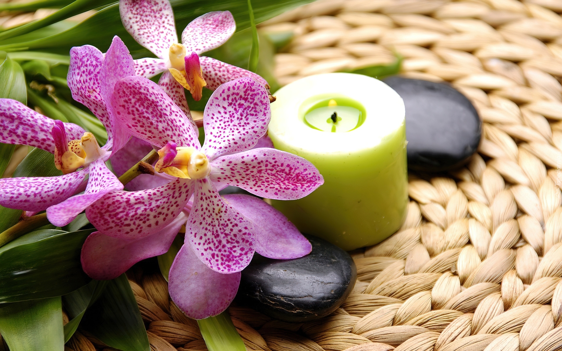 Edytor tapety: SPA, Storczyki, Świeczka, Kamienie