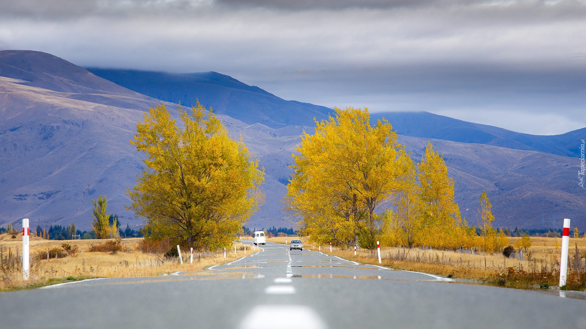 Edytor tapety: Nowa, Zelandia, Góry, Droga, Jesień, Drzewa