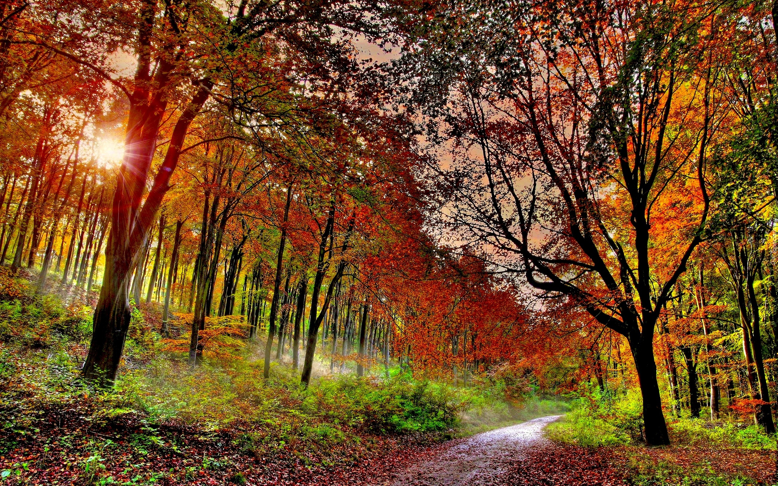 Edytor tapety: Jesień, Las, Ścieżka, Przebijające Światło