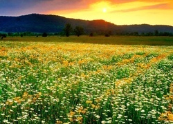 Edytor tapety: Góry, Łąka, Zachód Słońca, Kwiatki