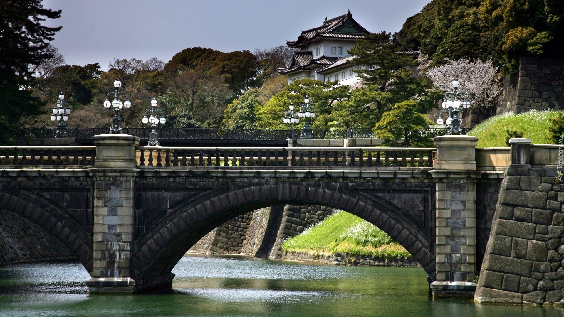 Edytor tapety: Zamek, Most, Rzeka, Japonia