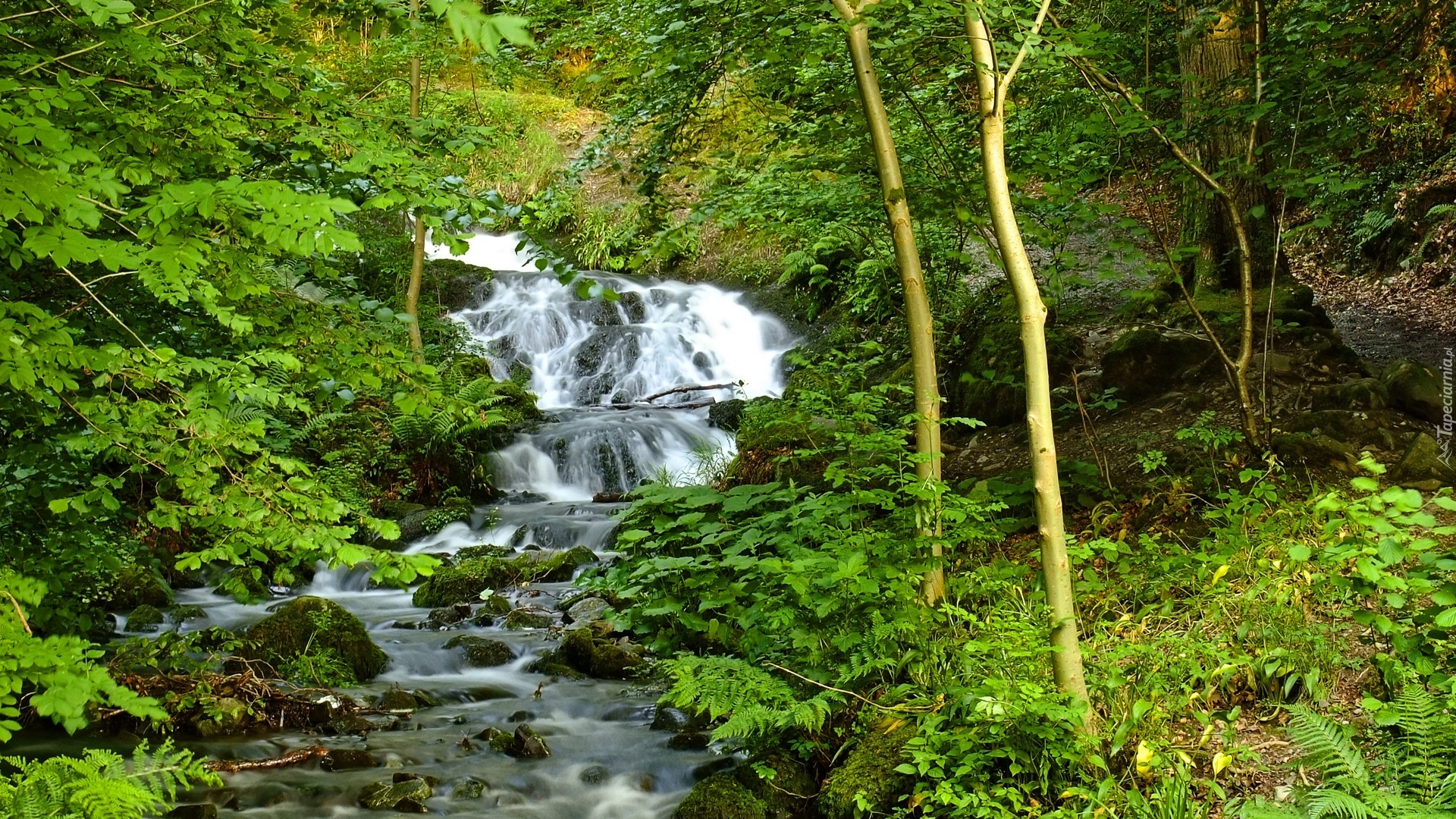 Edytor tapety: Wodospad, Potok, Górski, Roślinność, Wiosna