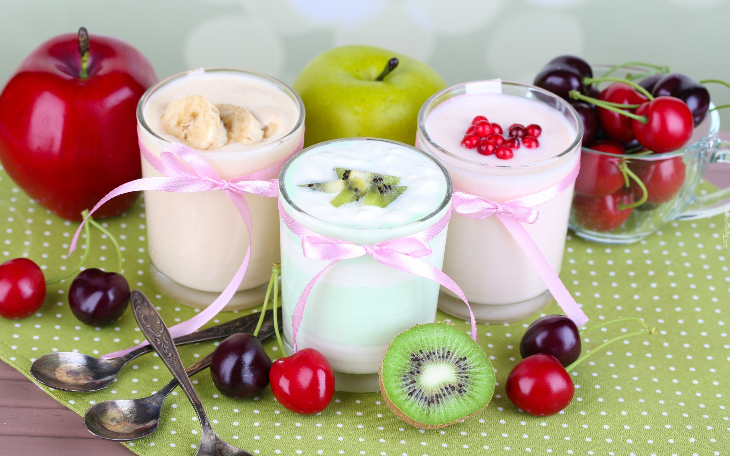 Edytor tapety: Jogurty, Owocowe, Jabłka, Czereśnie, Kiwi