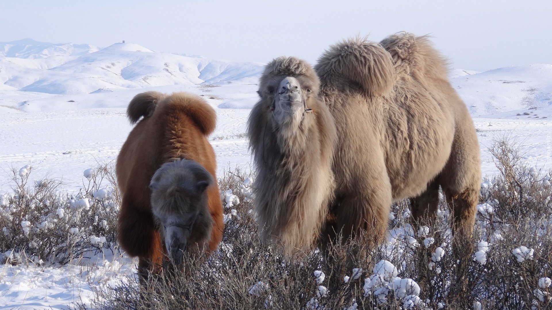 Edytor tapety: Wielbłądy, Góry, Zima