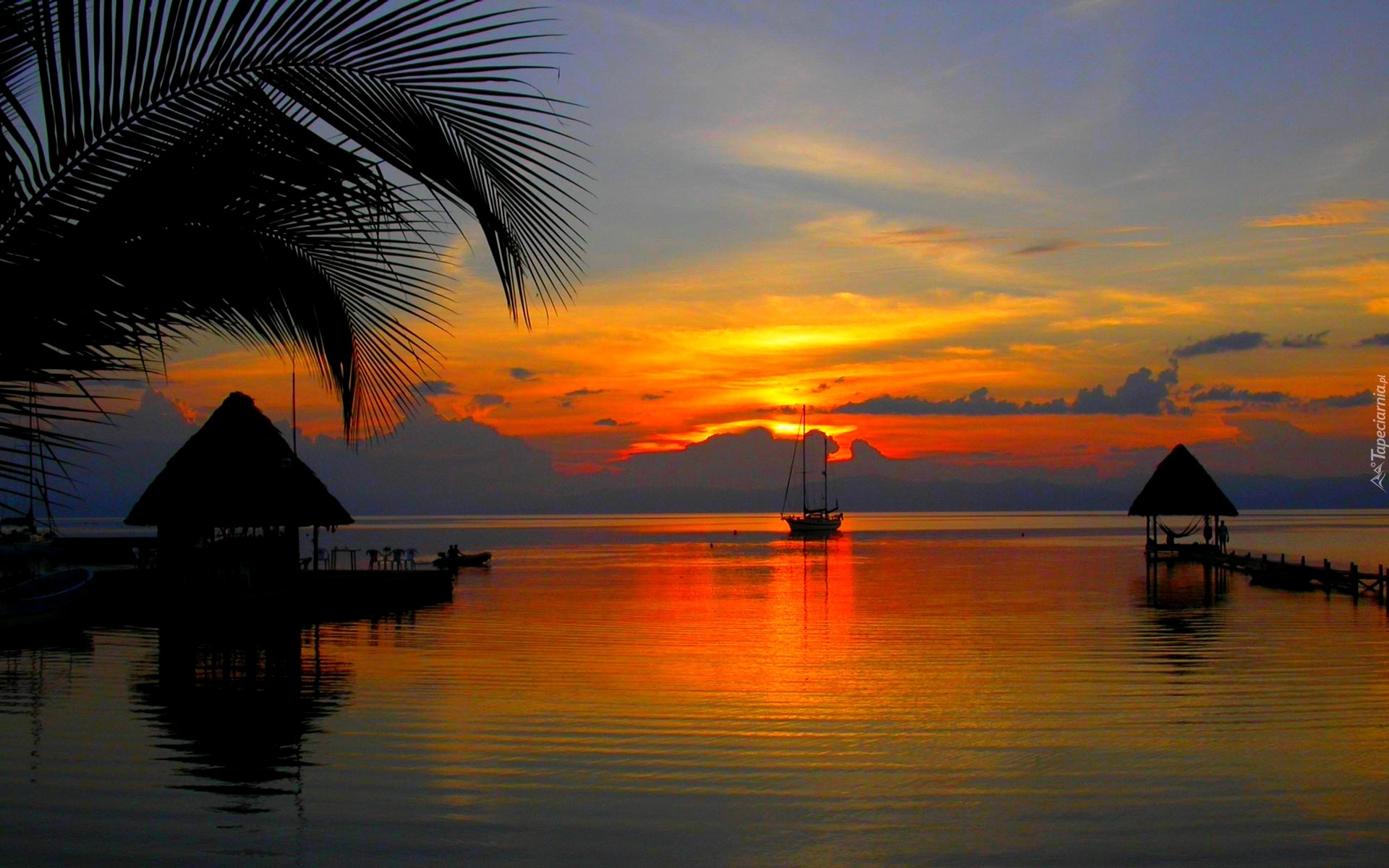 Edytor tapety: Domki, Morze, Zachód Słońca