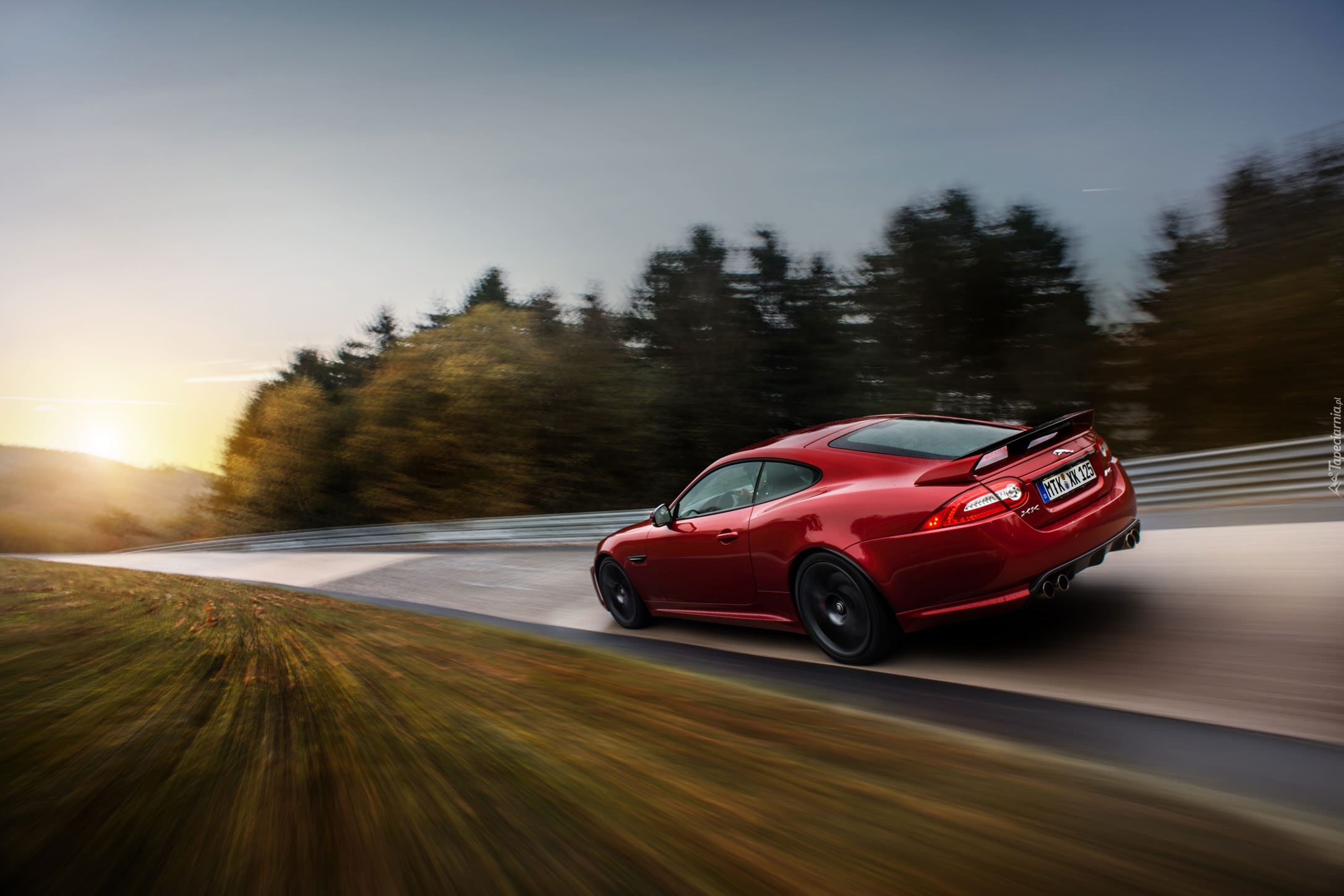 Edytor tapety: Jaguar, XK, Czerwony, Droga, Drzewa