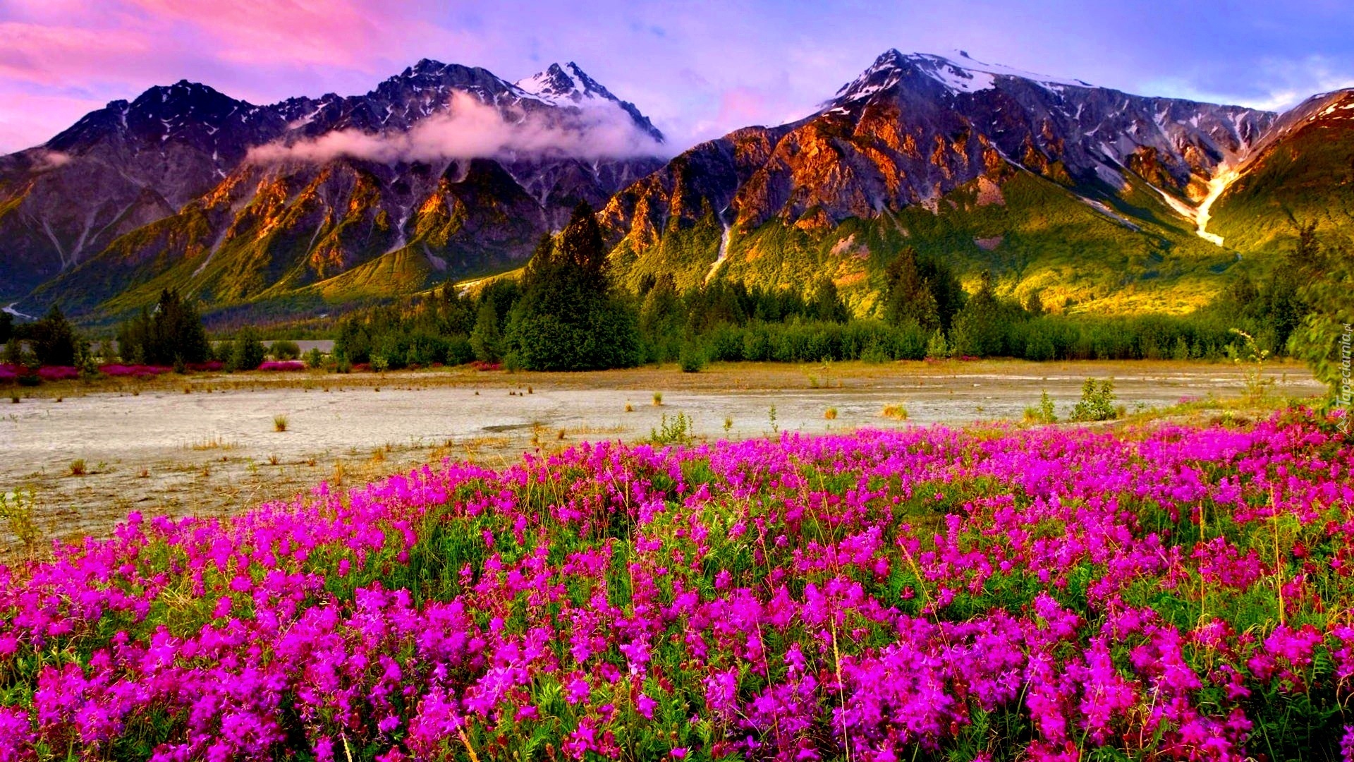 Edytor tapety: Góry, Łąka, Kwiatów