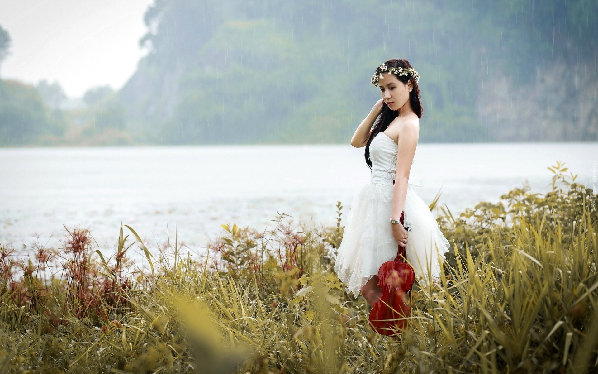 Edytor tapety: Skrzypce, Kobieta, Wianek, Trawa