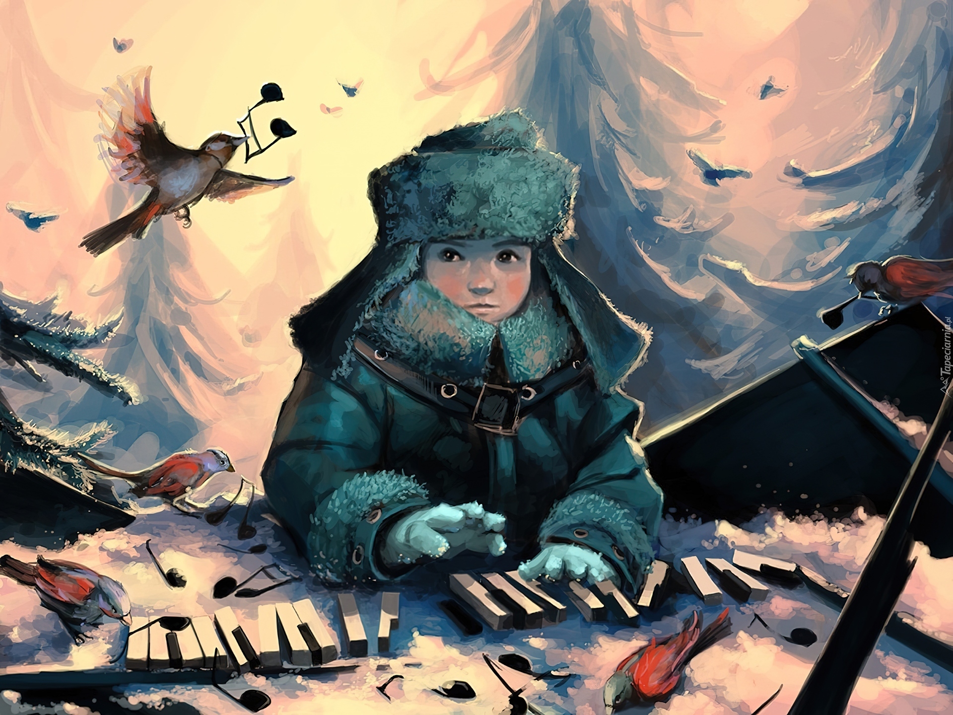 Edytor tapety: Cyril Rolando, Chłopiec, Ptaki