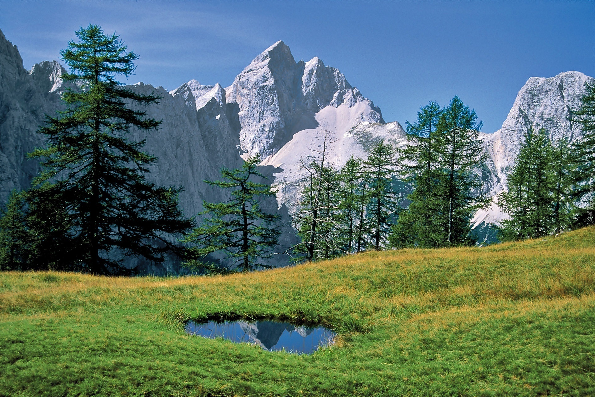 Edytor tapety: Góry, Świerki, Łąka, Jeziorko