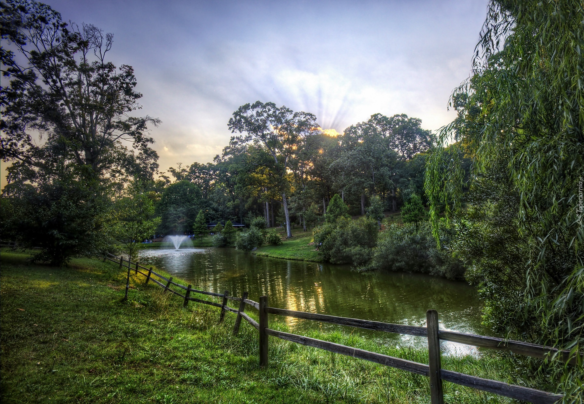 Edytor tapety: Park, Staw, Wodotrysk, Przebijające, Światło