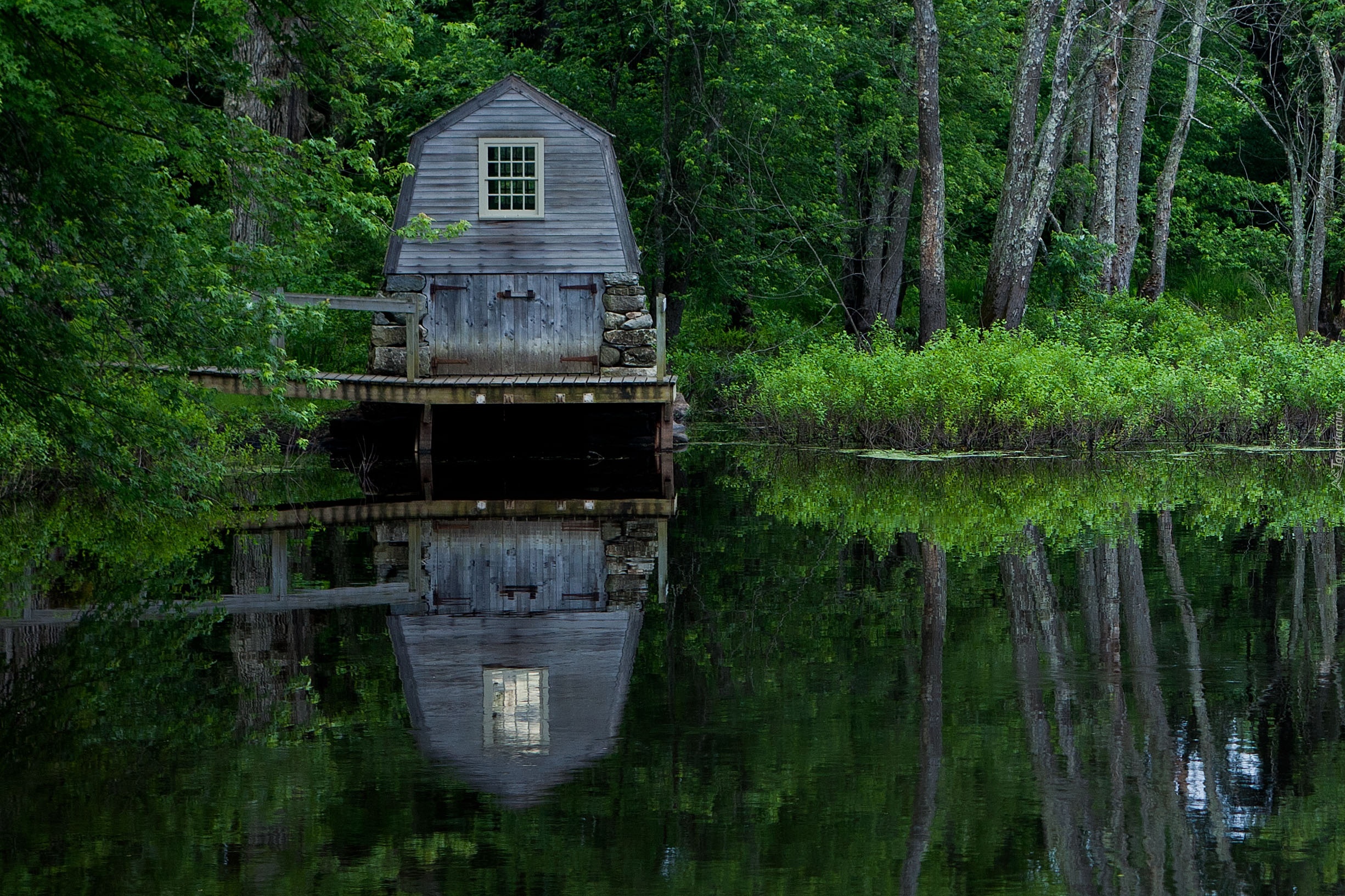 Edytor tapety: Domek, Jezioro, Las, Odbicie