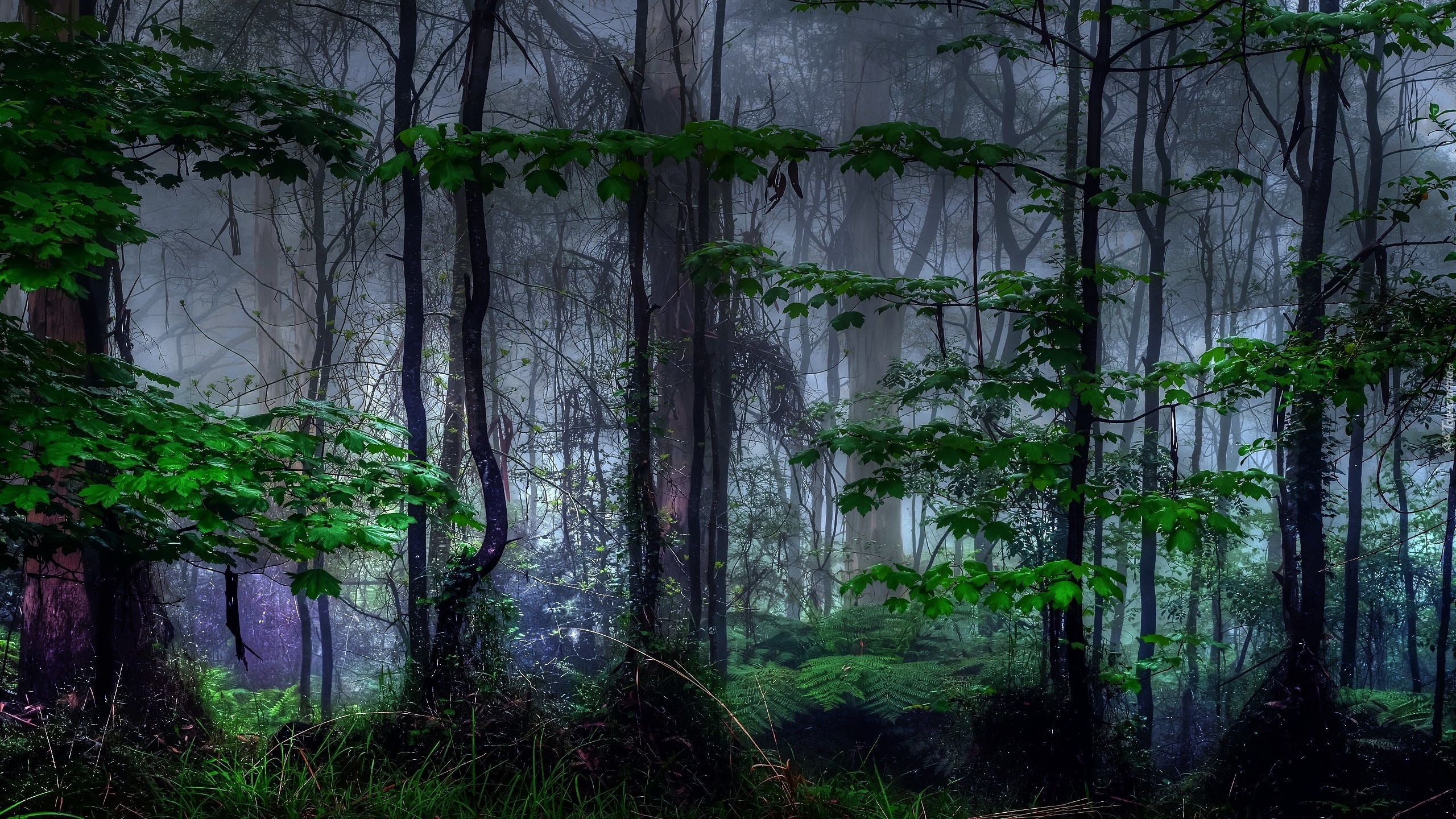 Edytor tapety: Las, Drzewa, Mgła