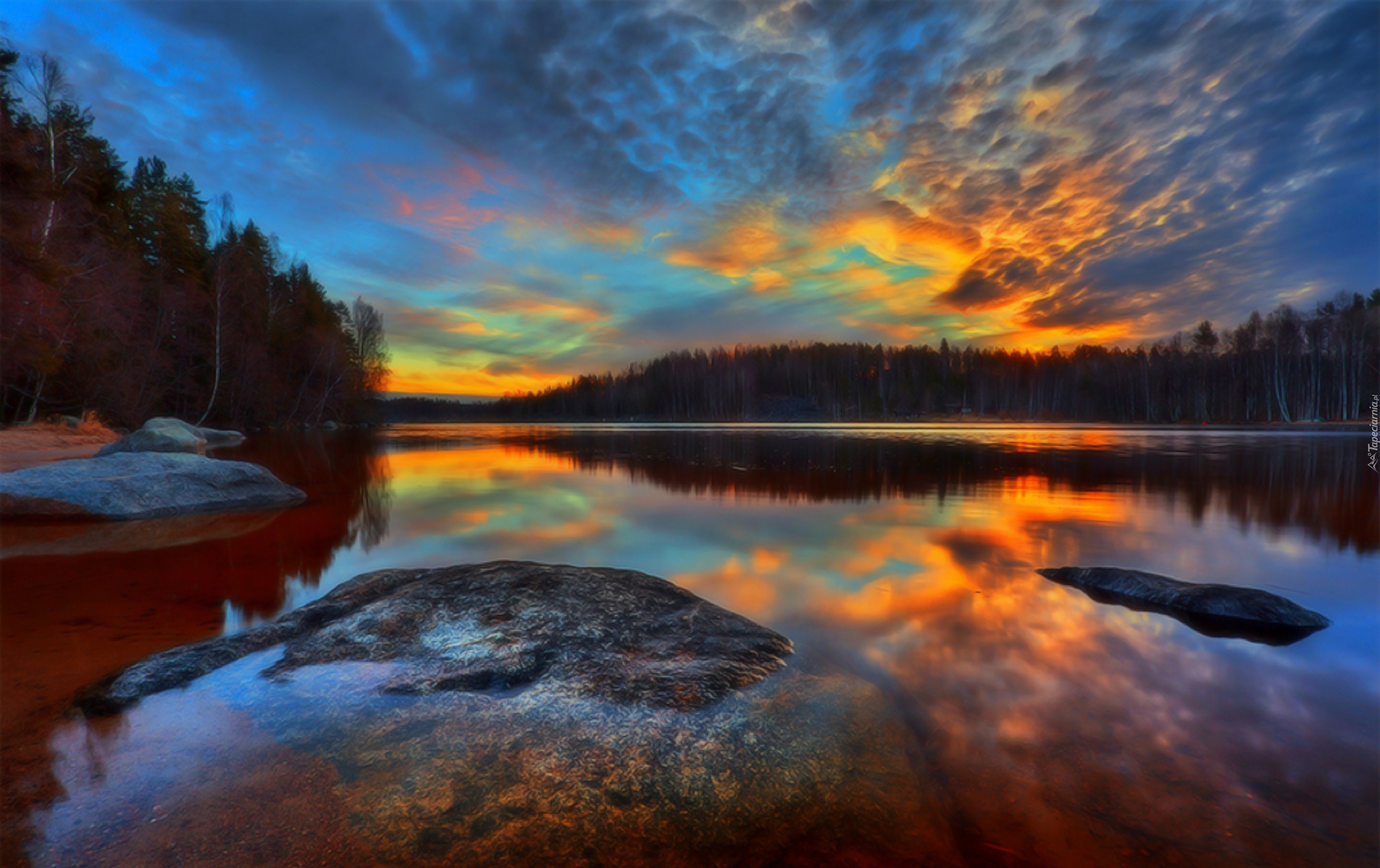 Edytor tapety: Zachód, Słońca, Rzeka, Odbicie
