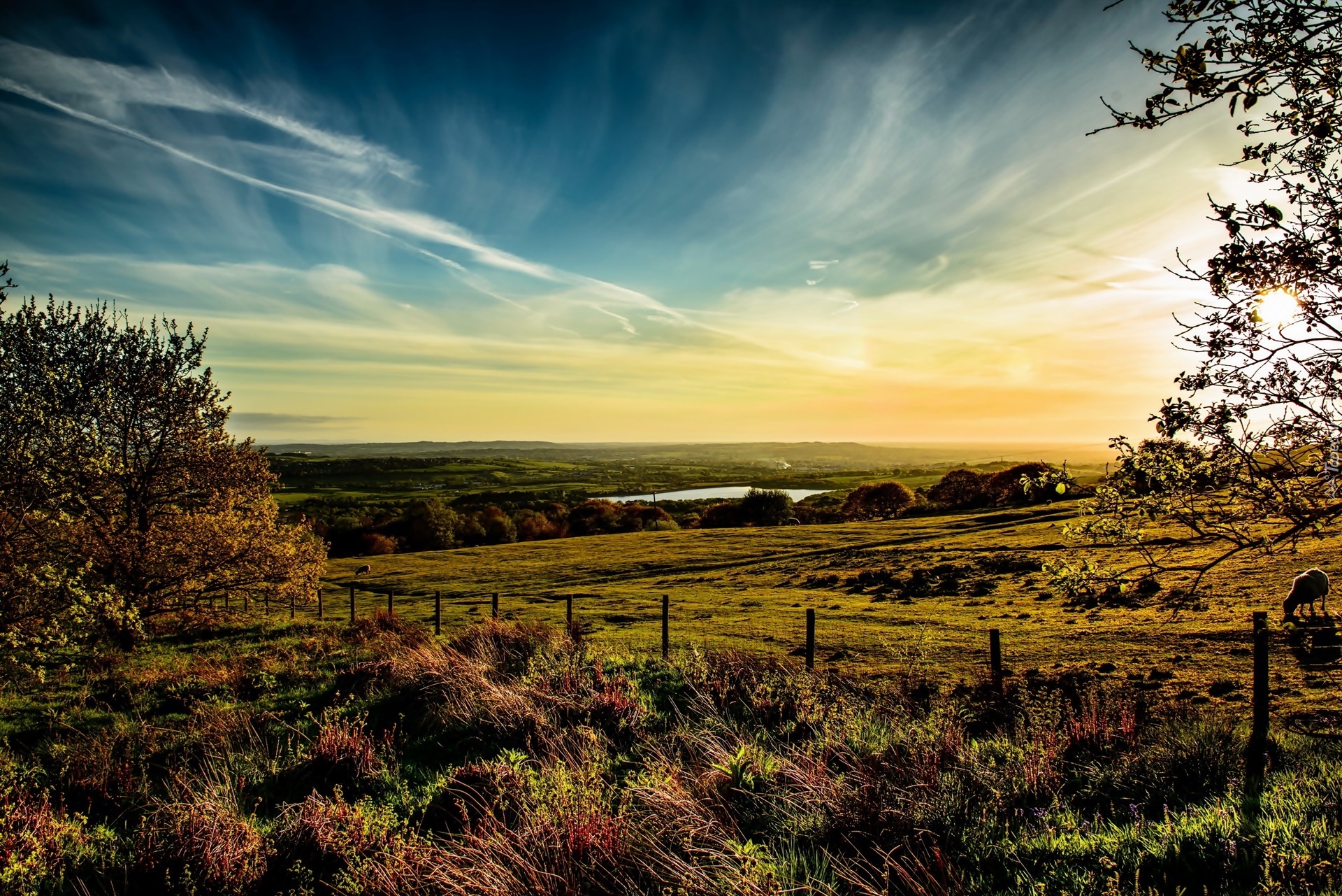 Edytor tapety: Pola, Łąki, Drzewa, Jezioro, Chmury