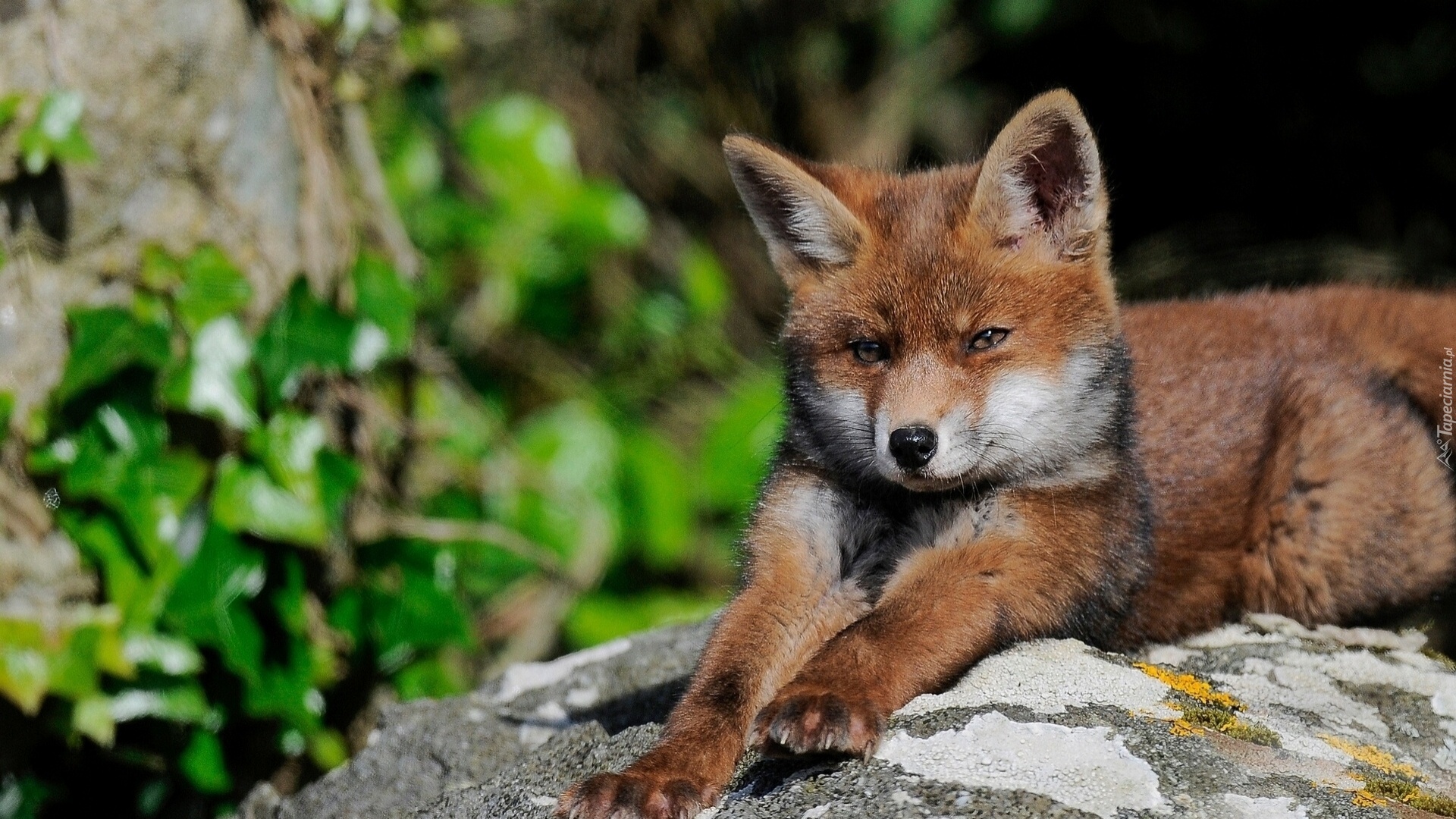 Edytor tapety: Młody, Lis, Kamień