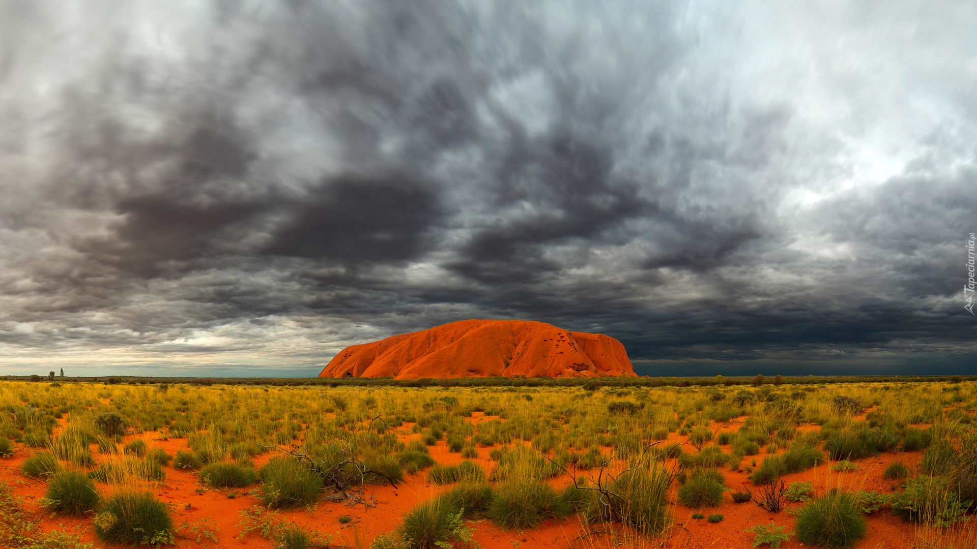 Edytor tapety: Uluru, Czerwona, Skała, Trawy, Chmury