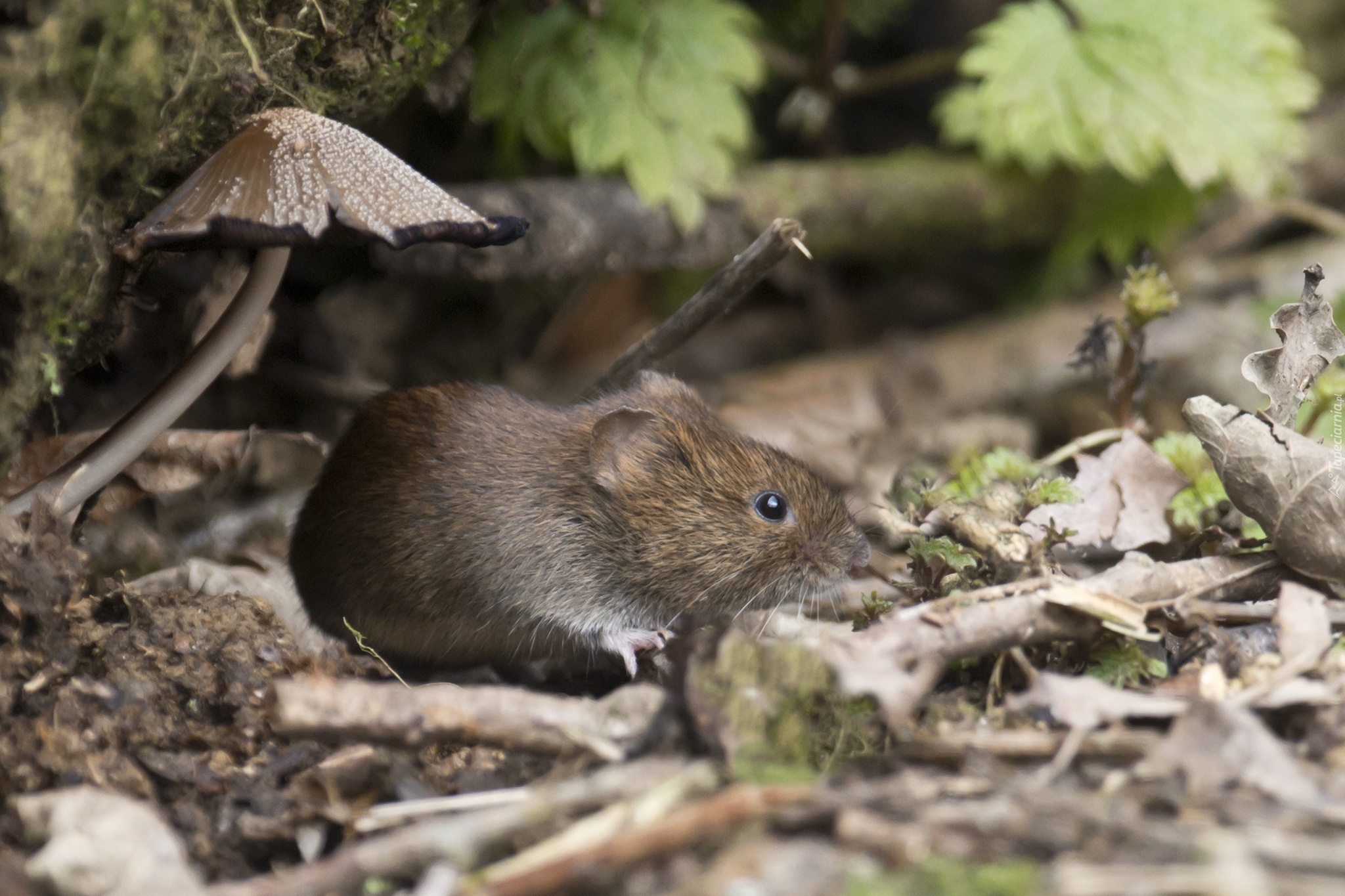 Edytor tapety: Mysz, Liście, Grzyb