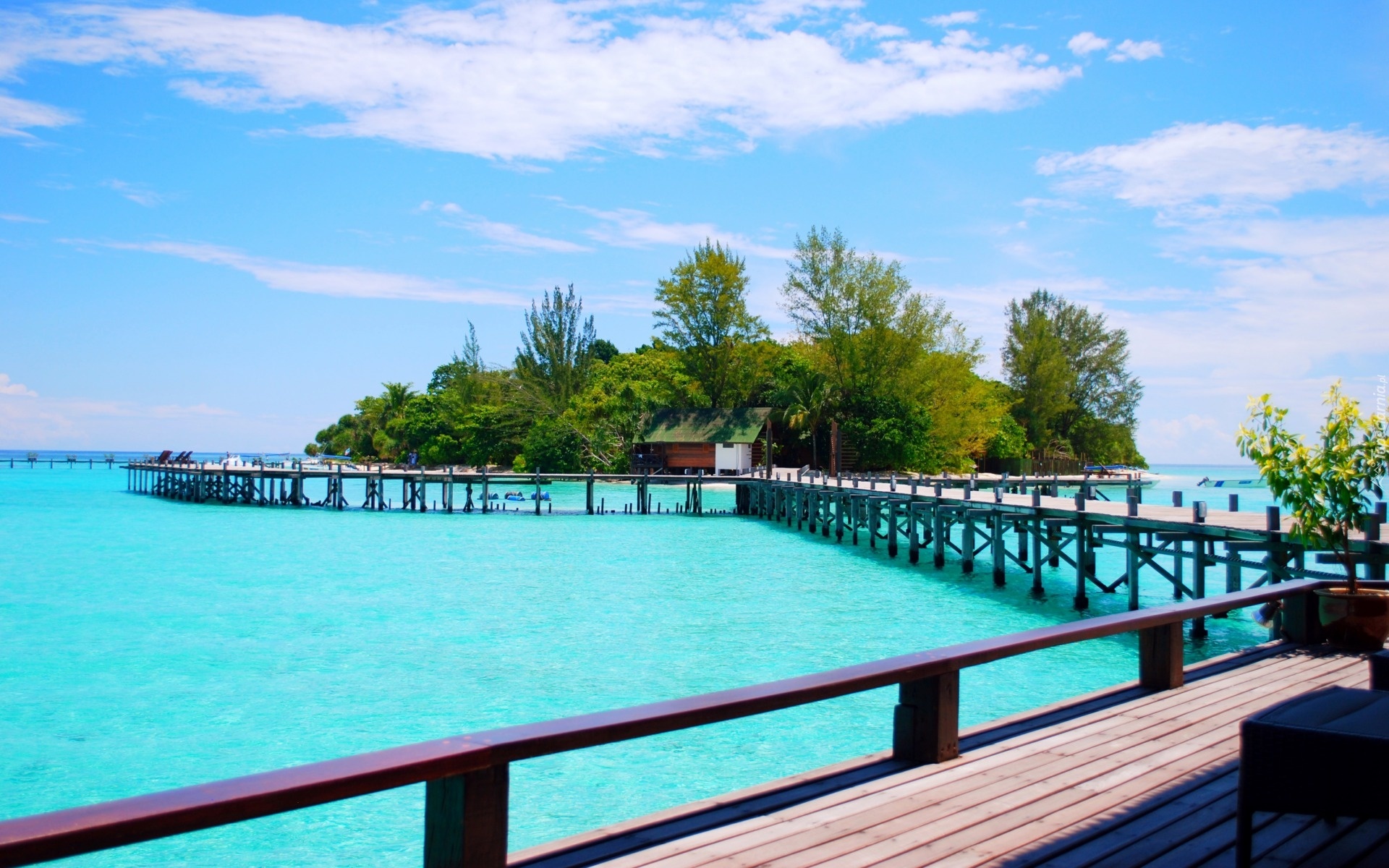 Edytor tapety: Wyspa, Pomosty, Domy, Morze, Roślinność