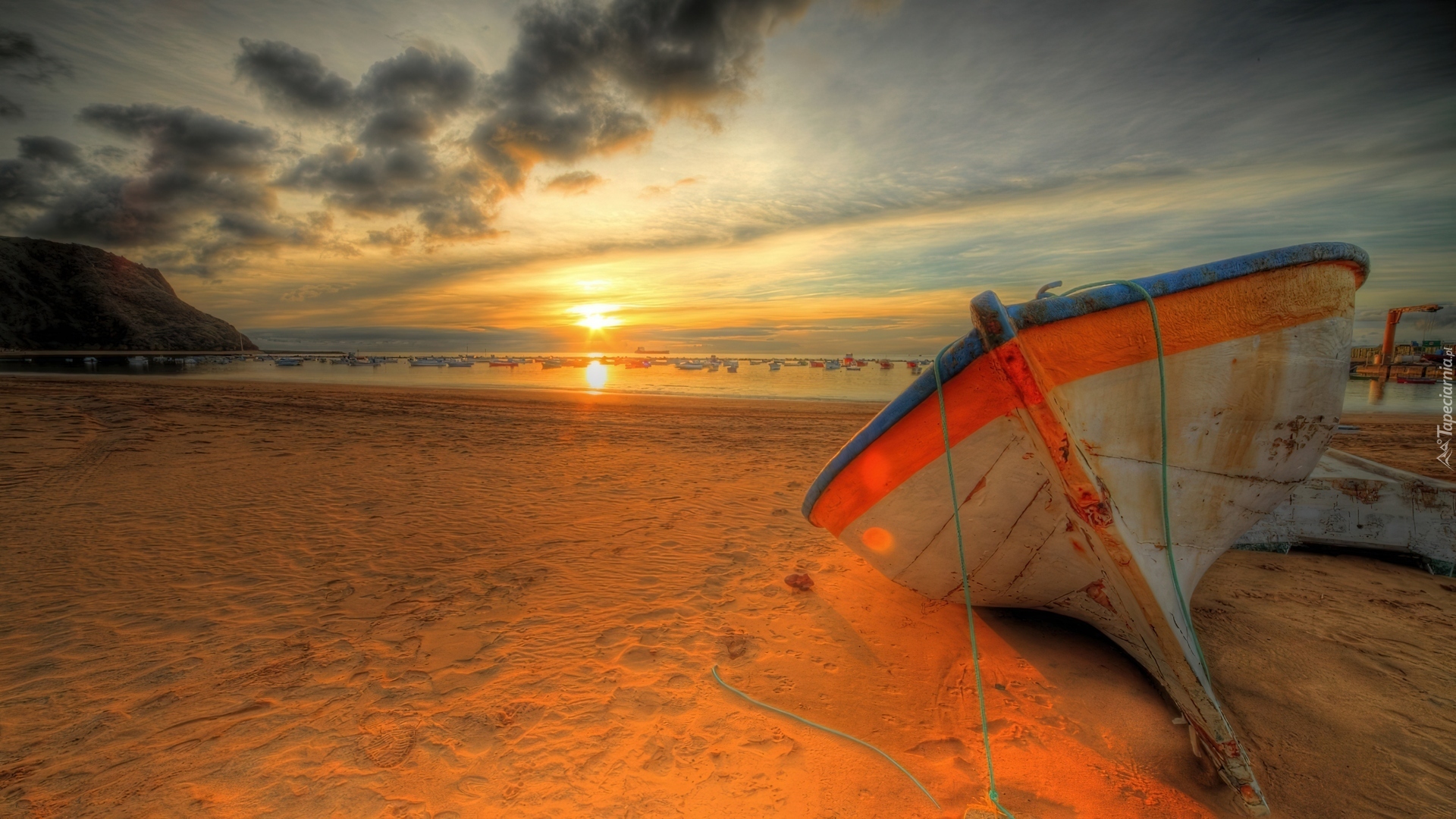 Edytor tapety: Plaża, Morze, Łódka, Zachód, Słońca