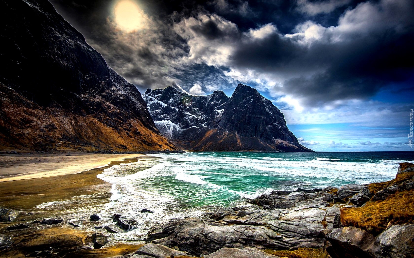 Edytor tapety: Morze, Skały, Zachmurzone, Niebo, Księżyc