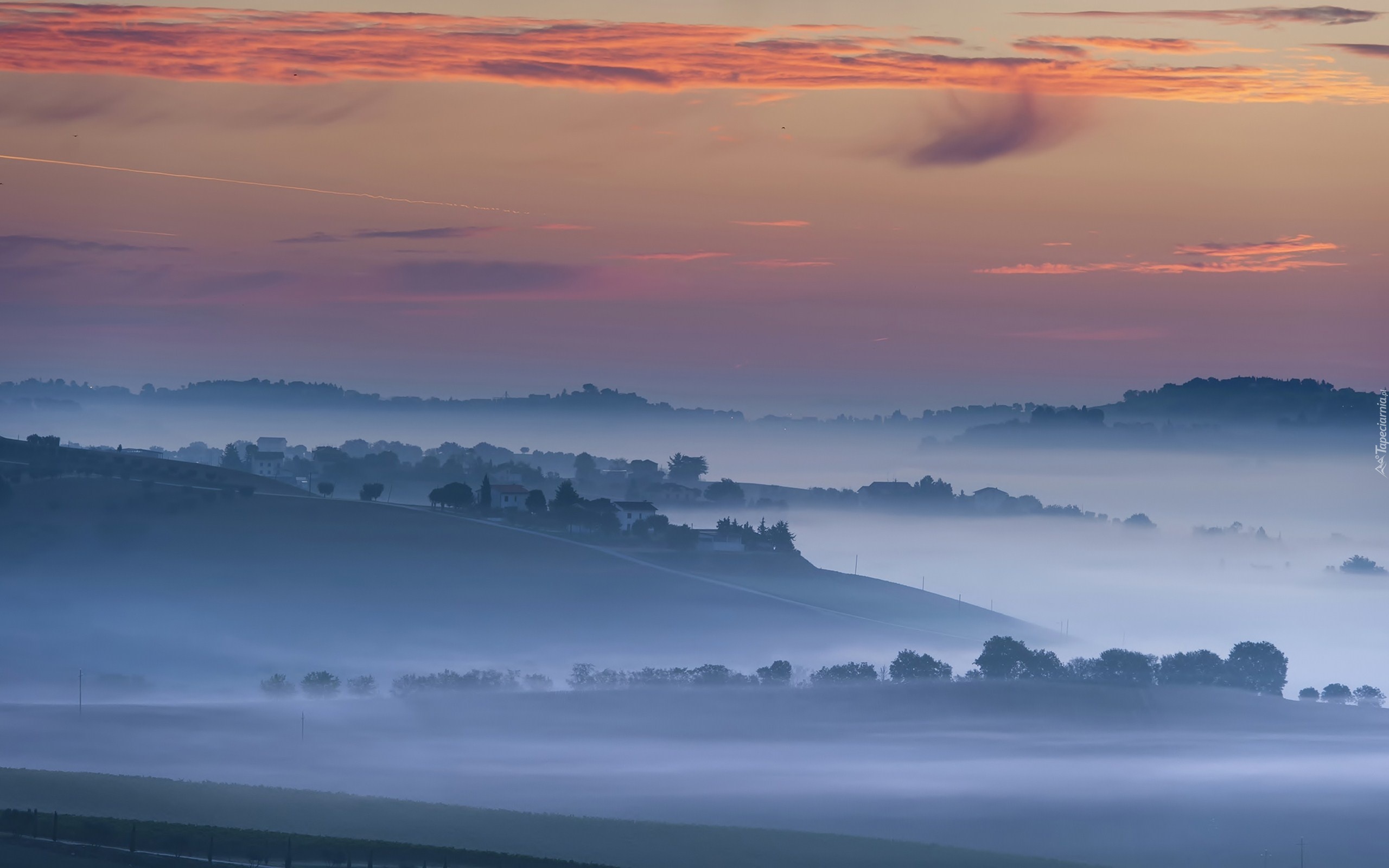 Edytor tapety: Mgła, Pola, Domy