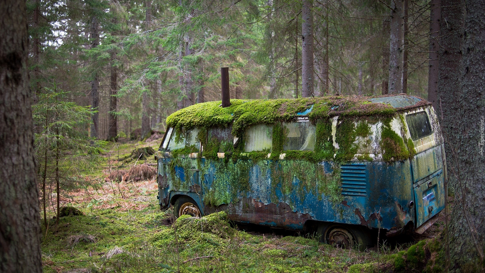 Edytor tapety: Zardzewiały, Samochód, Las, Mech