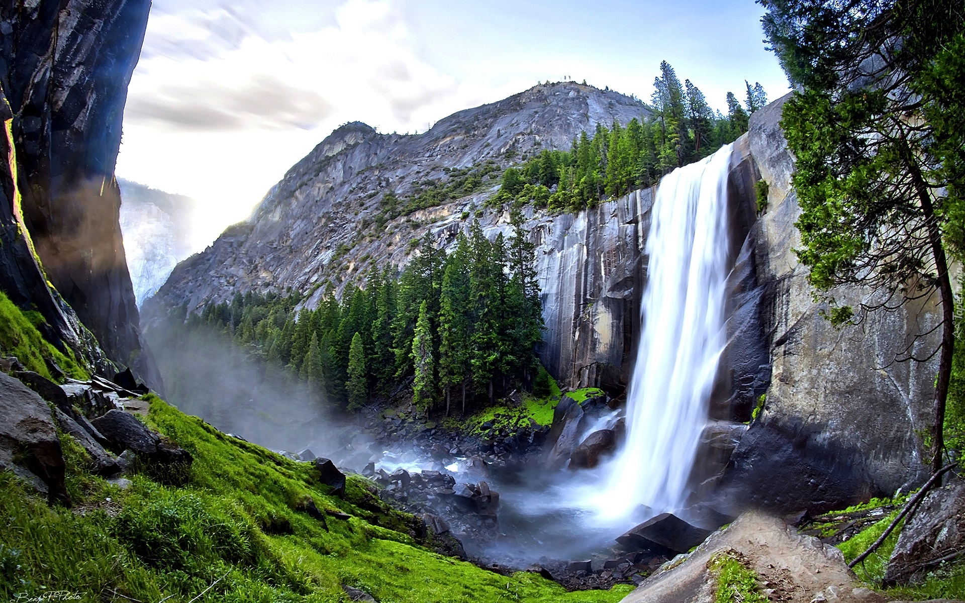 Edytor tapety: Góry, Skały, Las, Wodospad