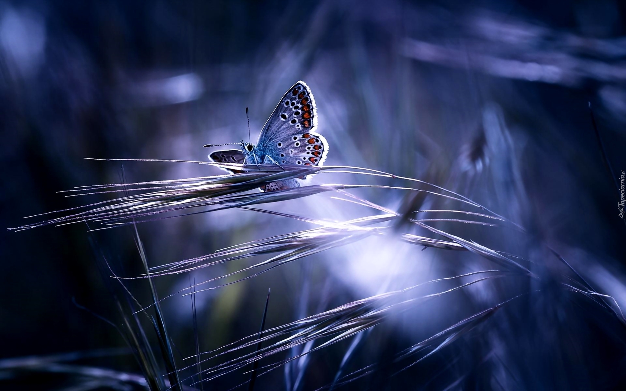 Edytor tapety: Niebieski, Motyl, Trawy, Przebijające Światło