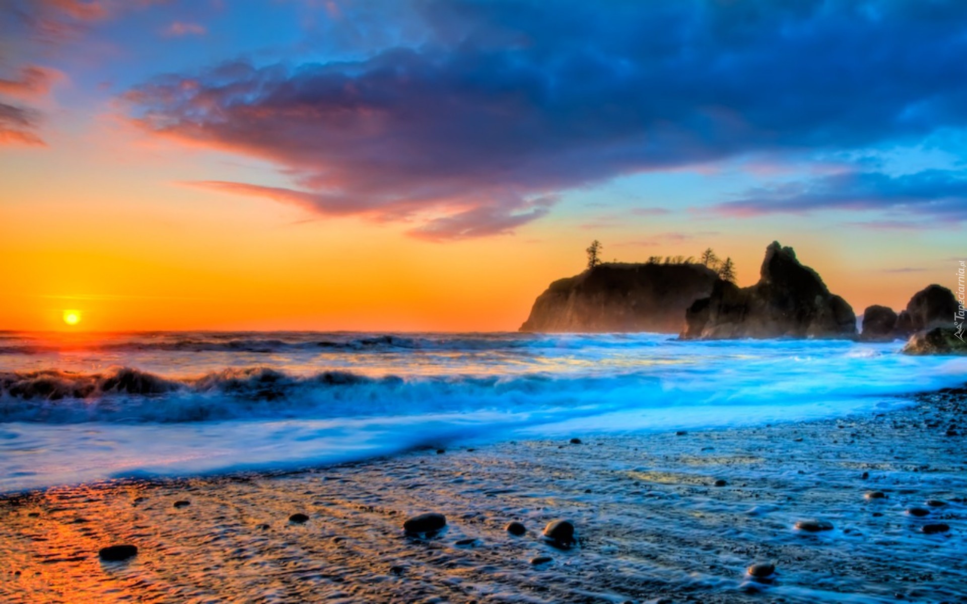 Edytor tapety: Plaża, Wybrzeże, Fale, Zachód Słońca
