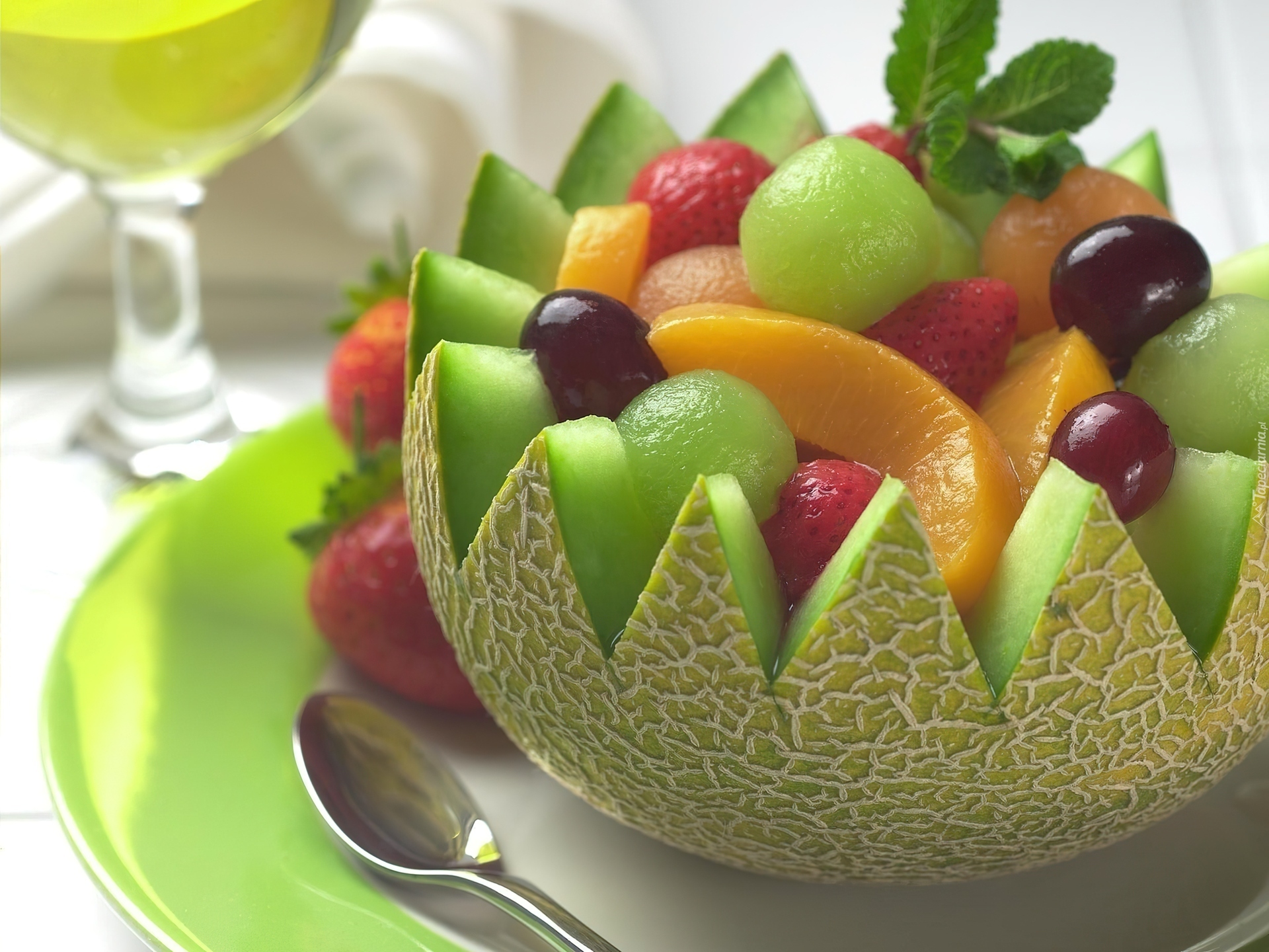 Edytor tapety: Owocowa, Sałatka, Łyżeczka