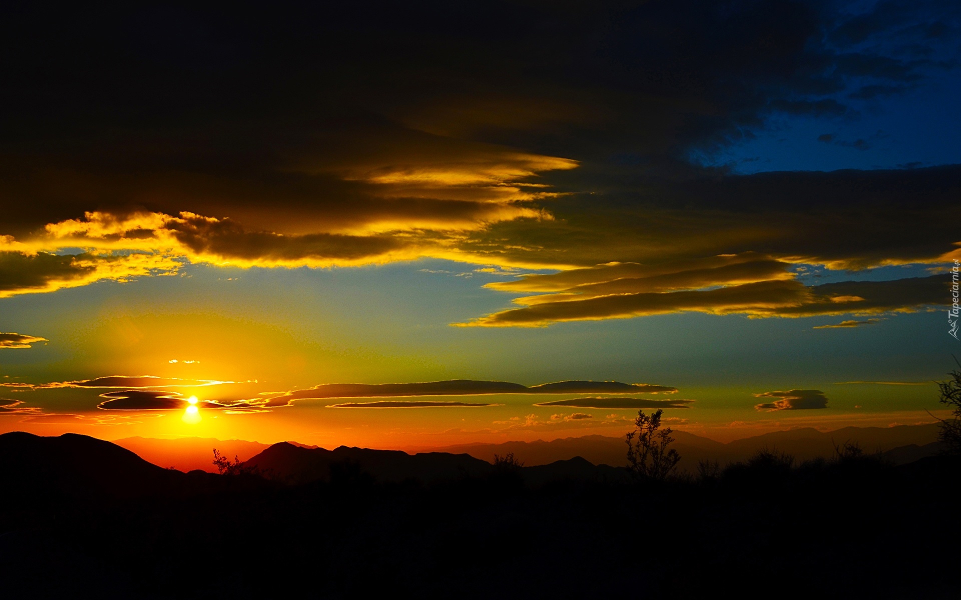Edytor tapety: Góry, Chmury, Zachód, Słońca