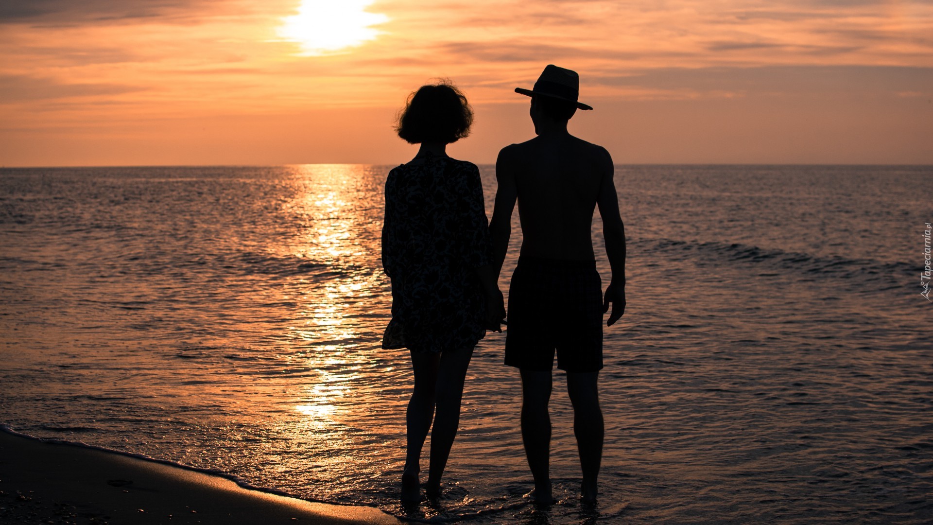 Edytor tapety: Zakochani, Zachód, Słońca, Morze