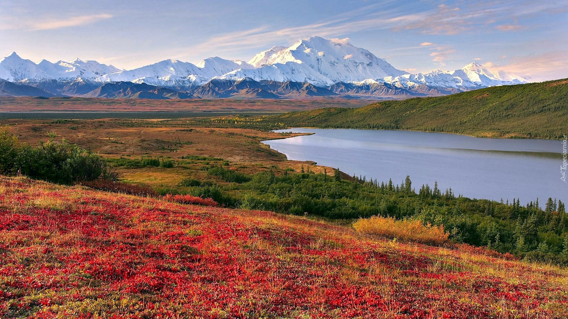 Edytor tapety: Alaska, Góry, Jezioro, Łąki