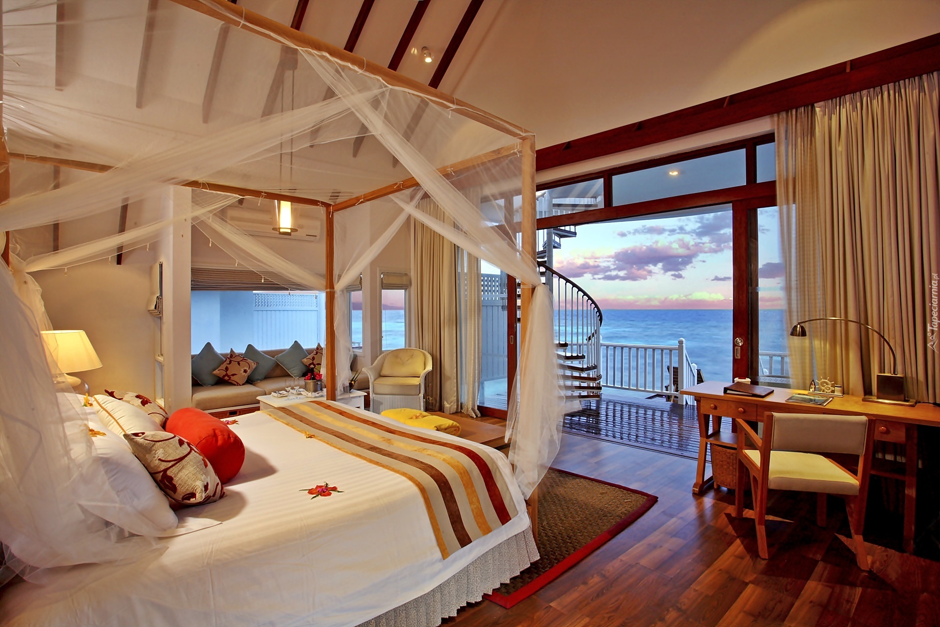 Edytor tapety: Dom, Wnętrze, Sypialnia, Łóżko, Okno, Widok