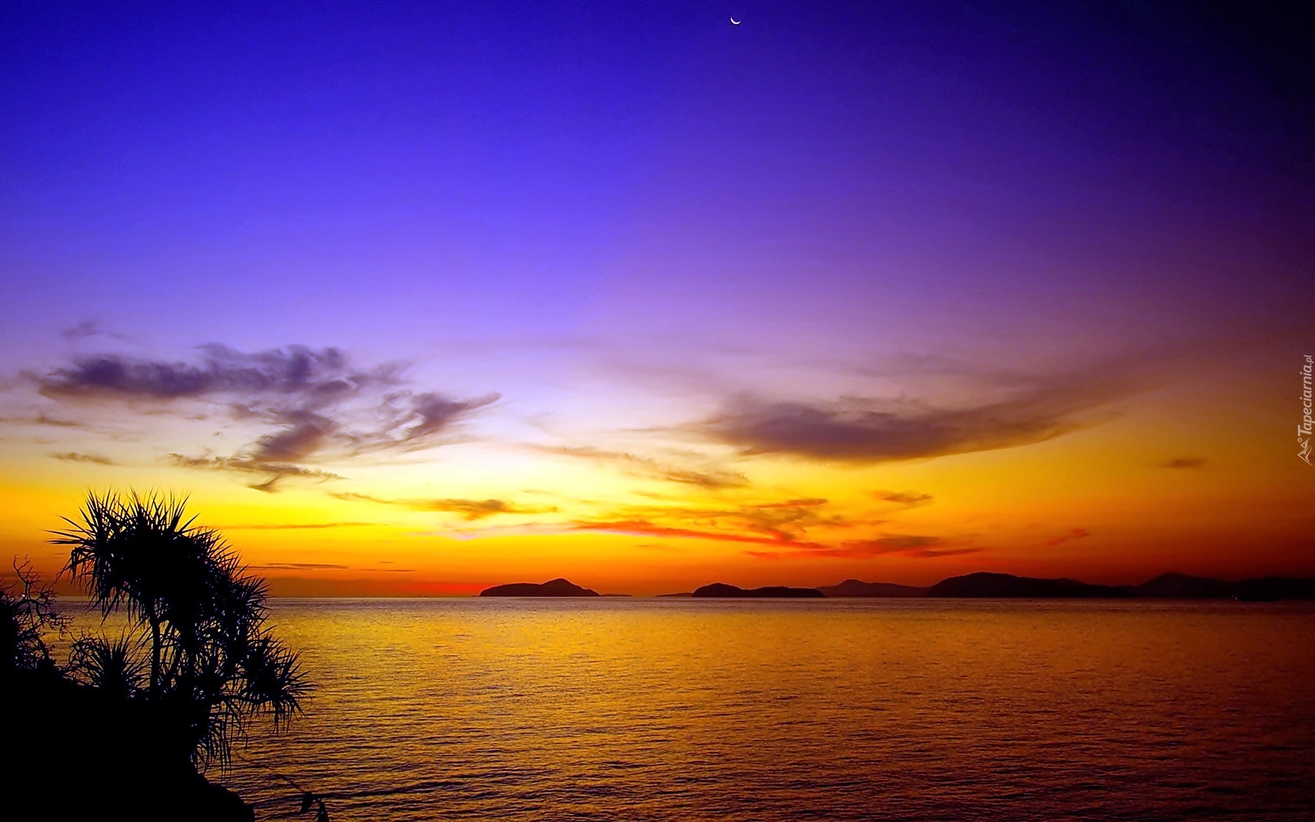Edytor tapety: Zachód, Słońca, Morze, Palmy